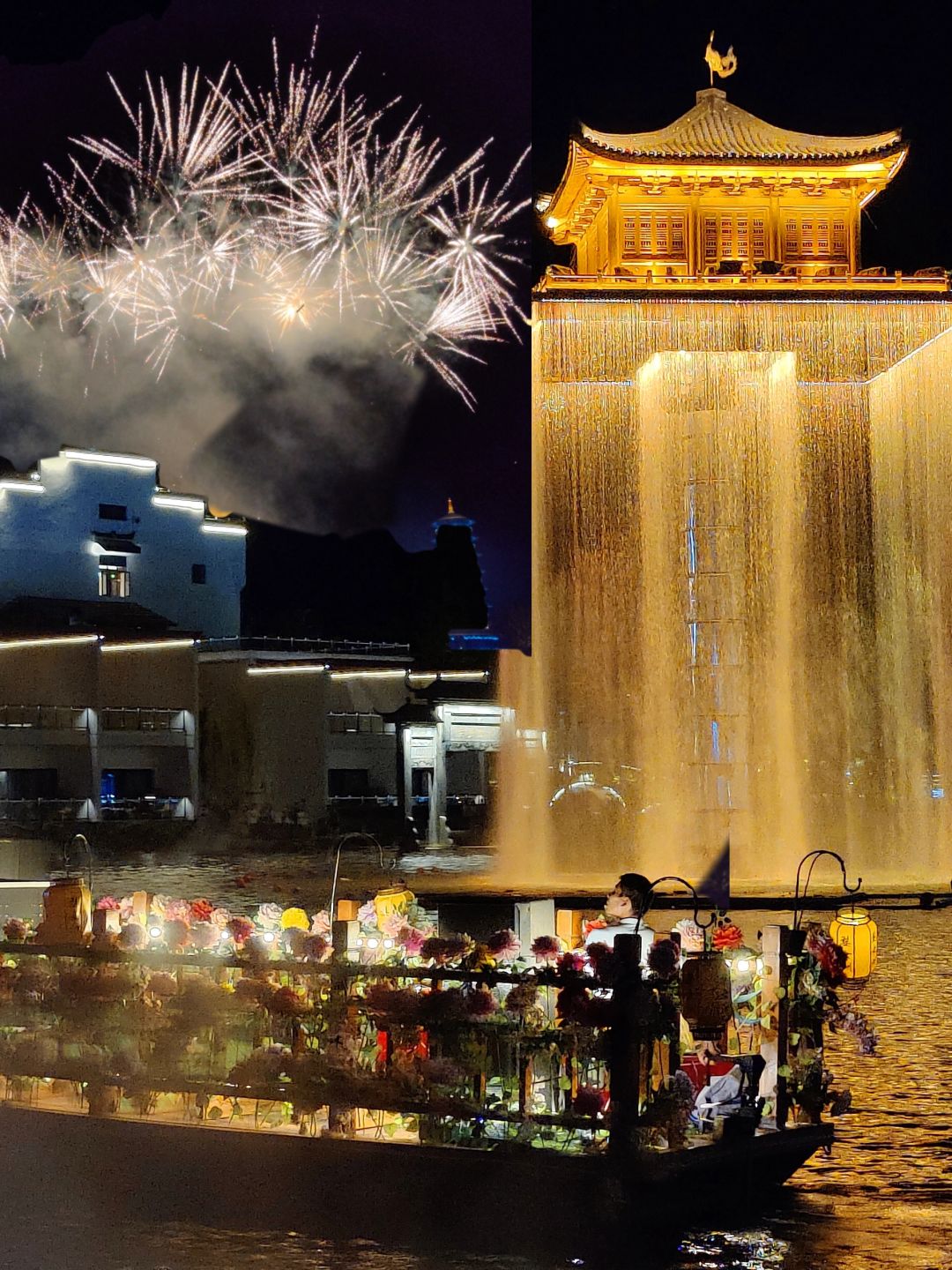 在徽市街看《侠客巡游》,感受金庸仙侠“婺”林传奇故事,在抱显湖➕五显湖看《盛世徽州》的浪漫铁花和凤凰飞天表演