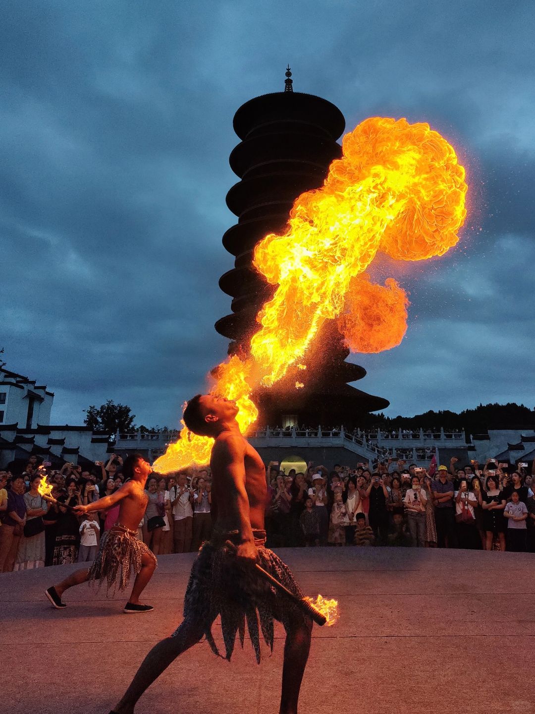 在抱玉塔看《喷火表演》,火光冲天,震撼无比