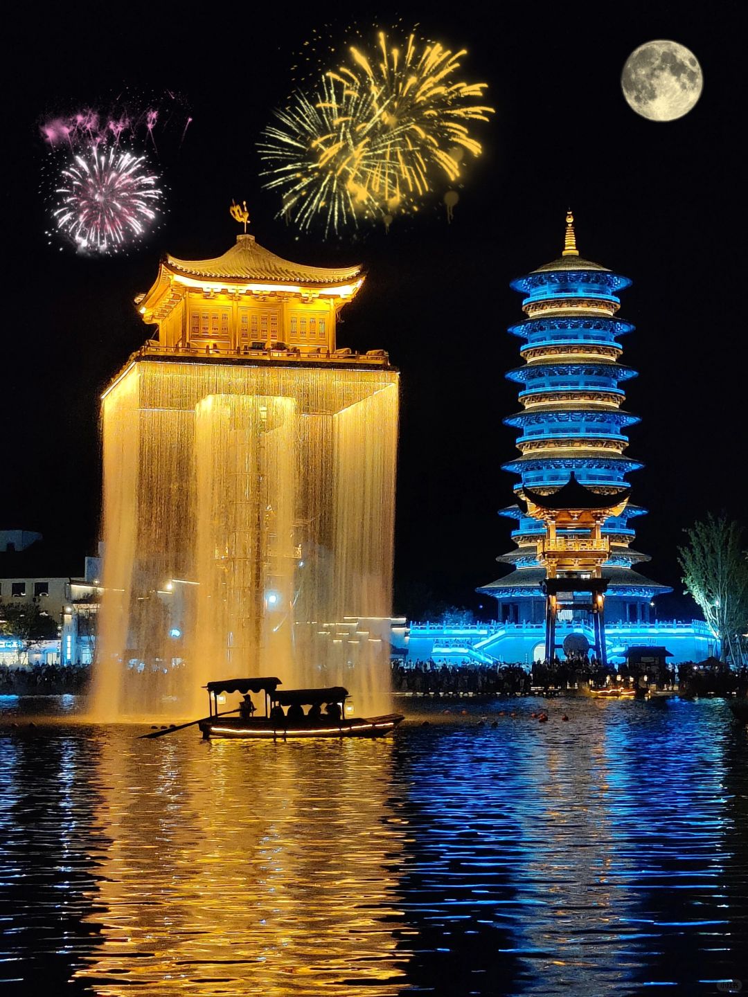 在抱玉塔/金阁看《打铁花》➕《水上舞狮》,中国传统非遗文化,在金阁群狮斗艳,看绝美铁花,一击下去,便是星辰洒满人间