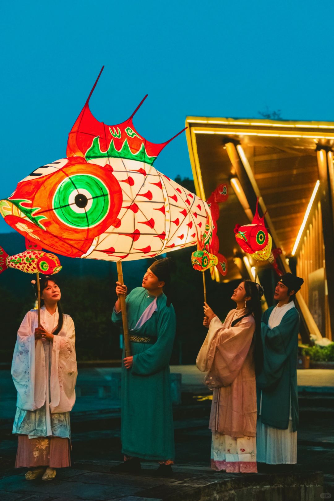 🎈花灯游园会:身着汉服的小姐姐手拿徽州传统鱼灯,翩翩起舞
