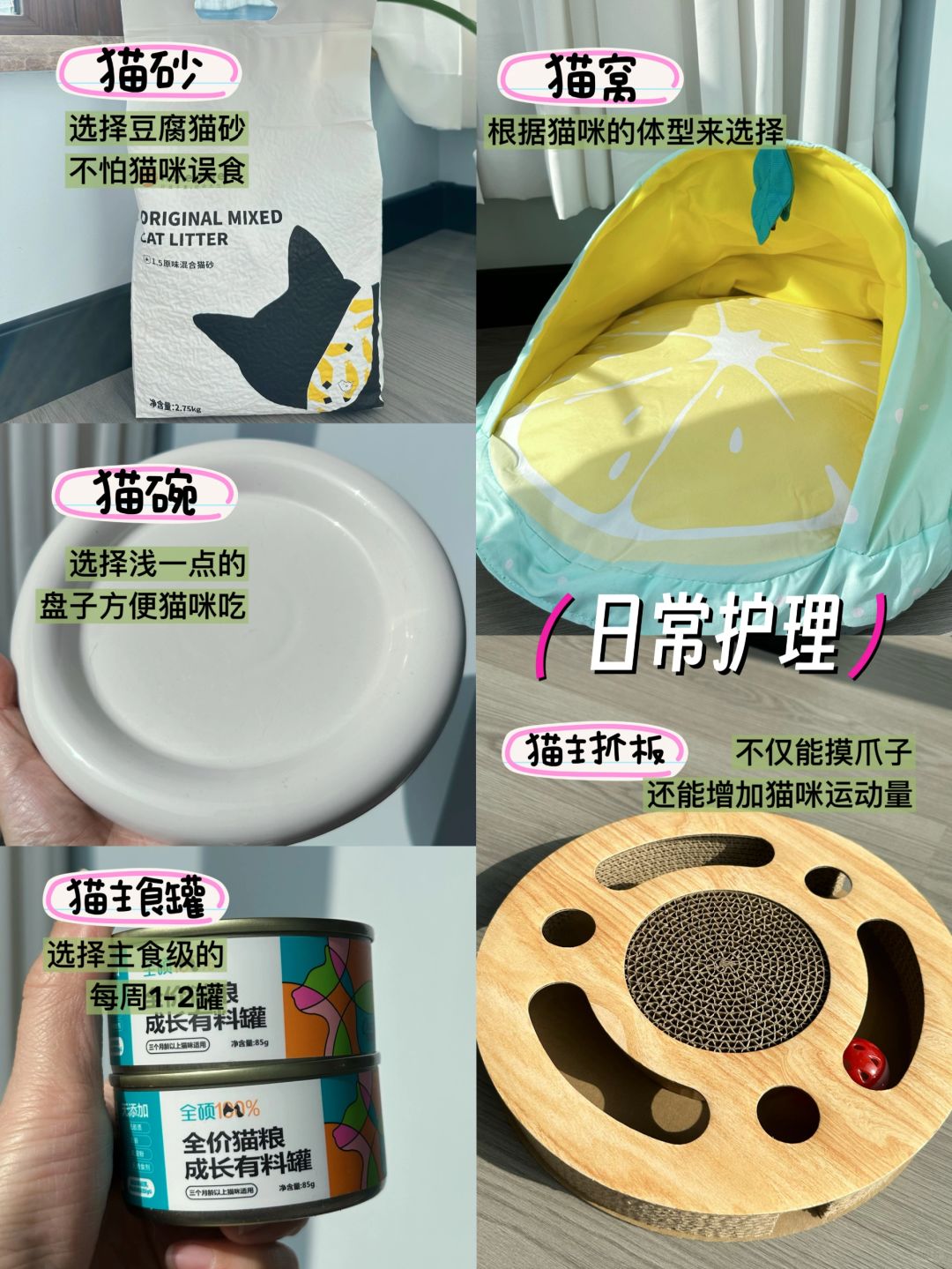 猫砂:注意粉尘、结团性,推荐豆腐猫砂