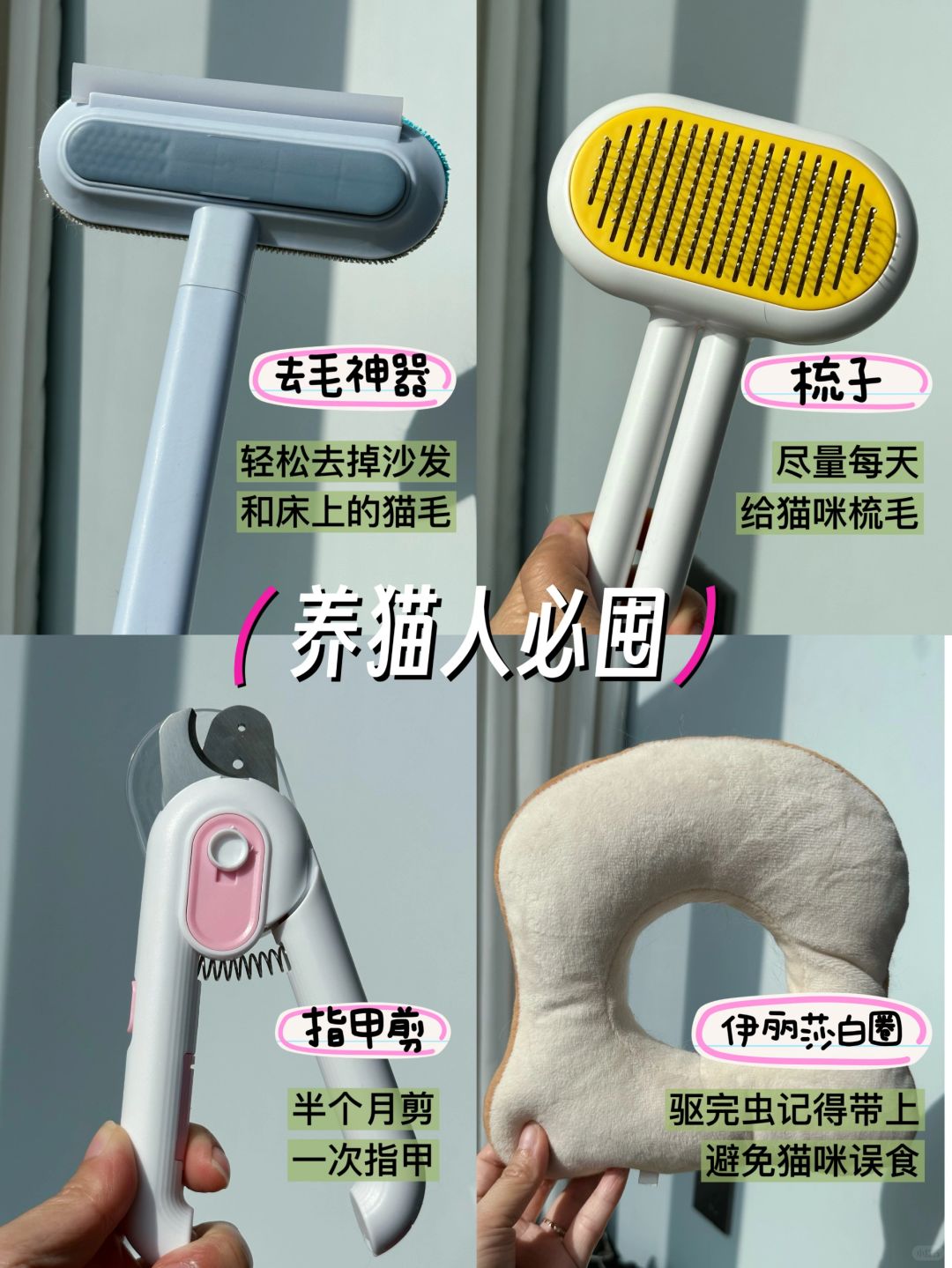 梳子:梳掉废毛,预防毛球症