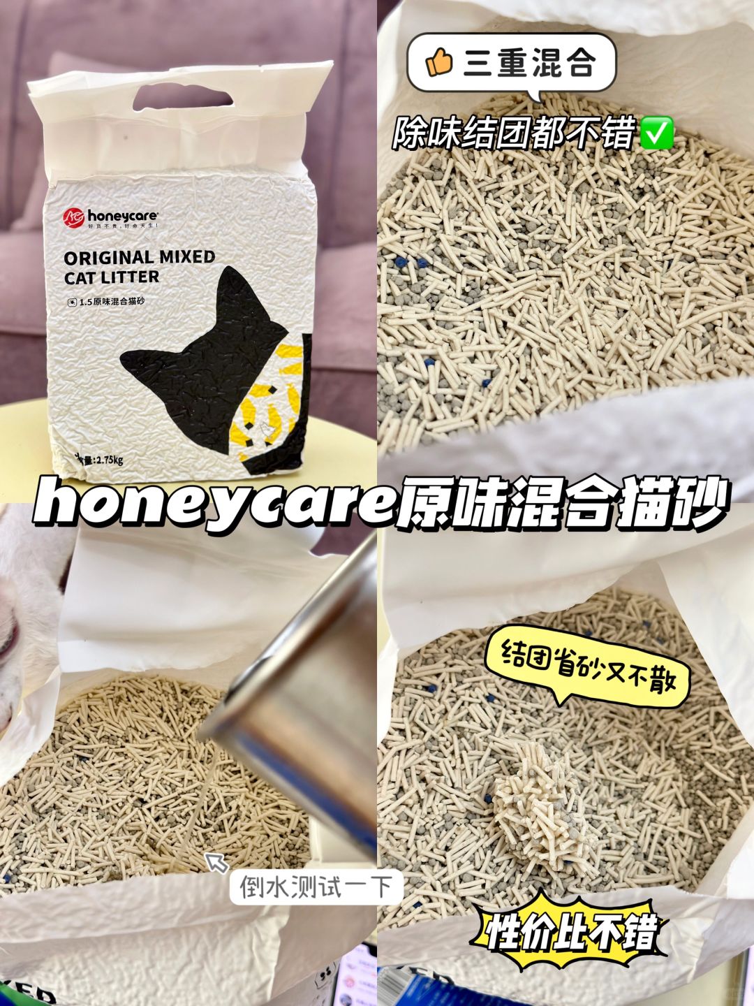 honeycare混合猫砂这款猫砂的除臭效果敲赞好嘛,有时候工作忙三四天才铲一次猫砂,也根本不会臭。结团快,不粘底。一铲子下去就是完整的一块,强迫症都给我治好了!几乎没有粉尘,麻麻再也不担心我刨砂吸入灰尘啦