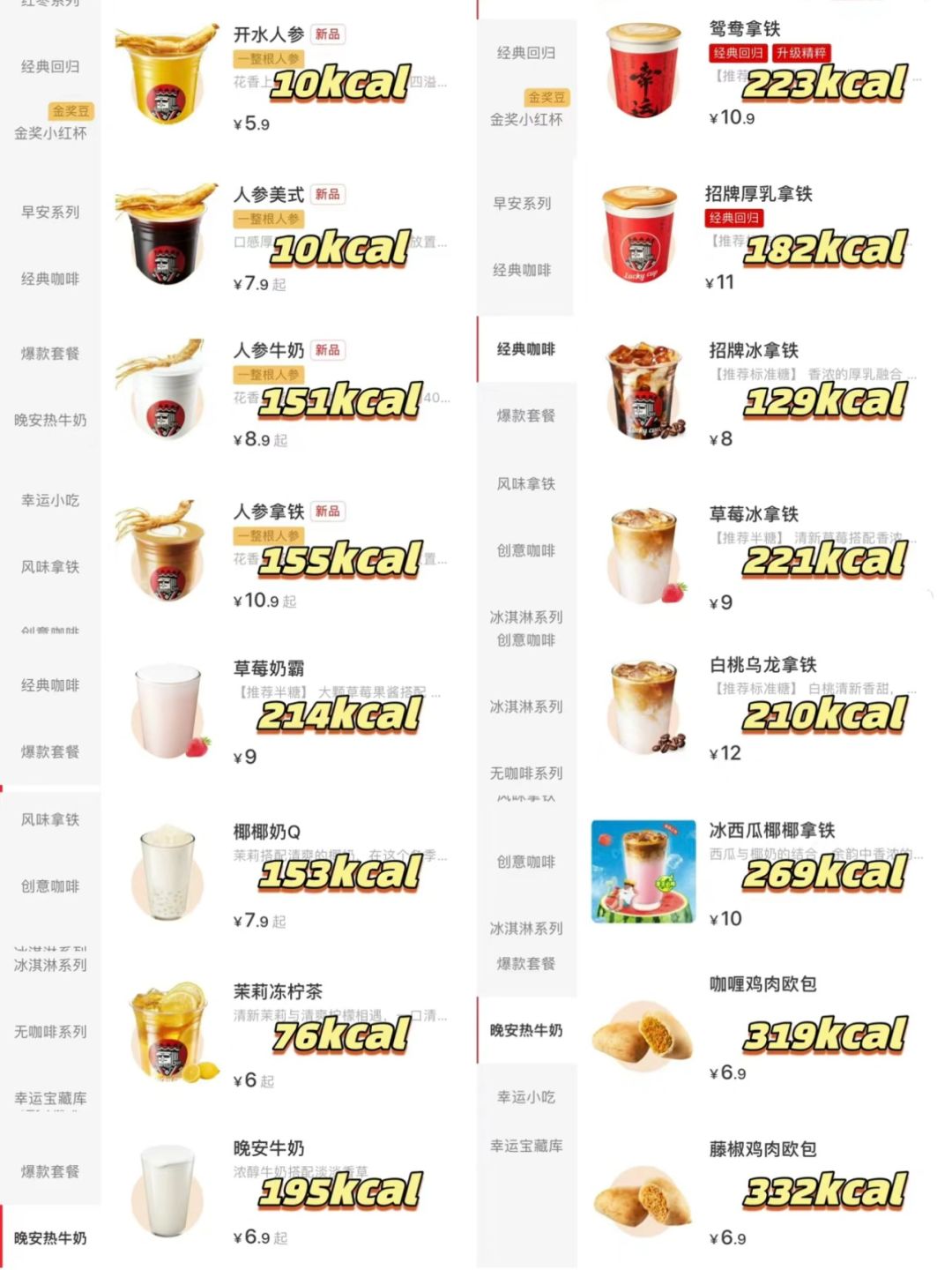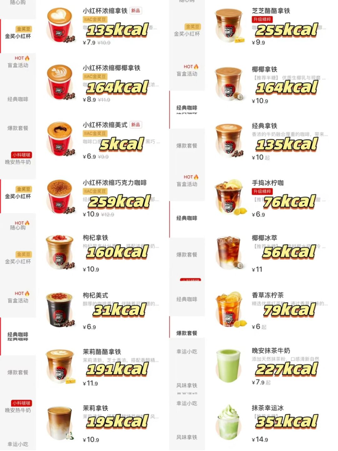 幸运咖热量测评‼️少林功夫咖啡🍃低卡点单