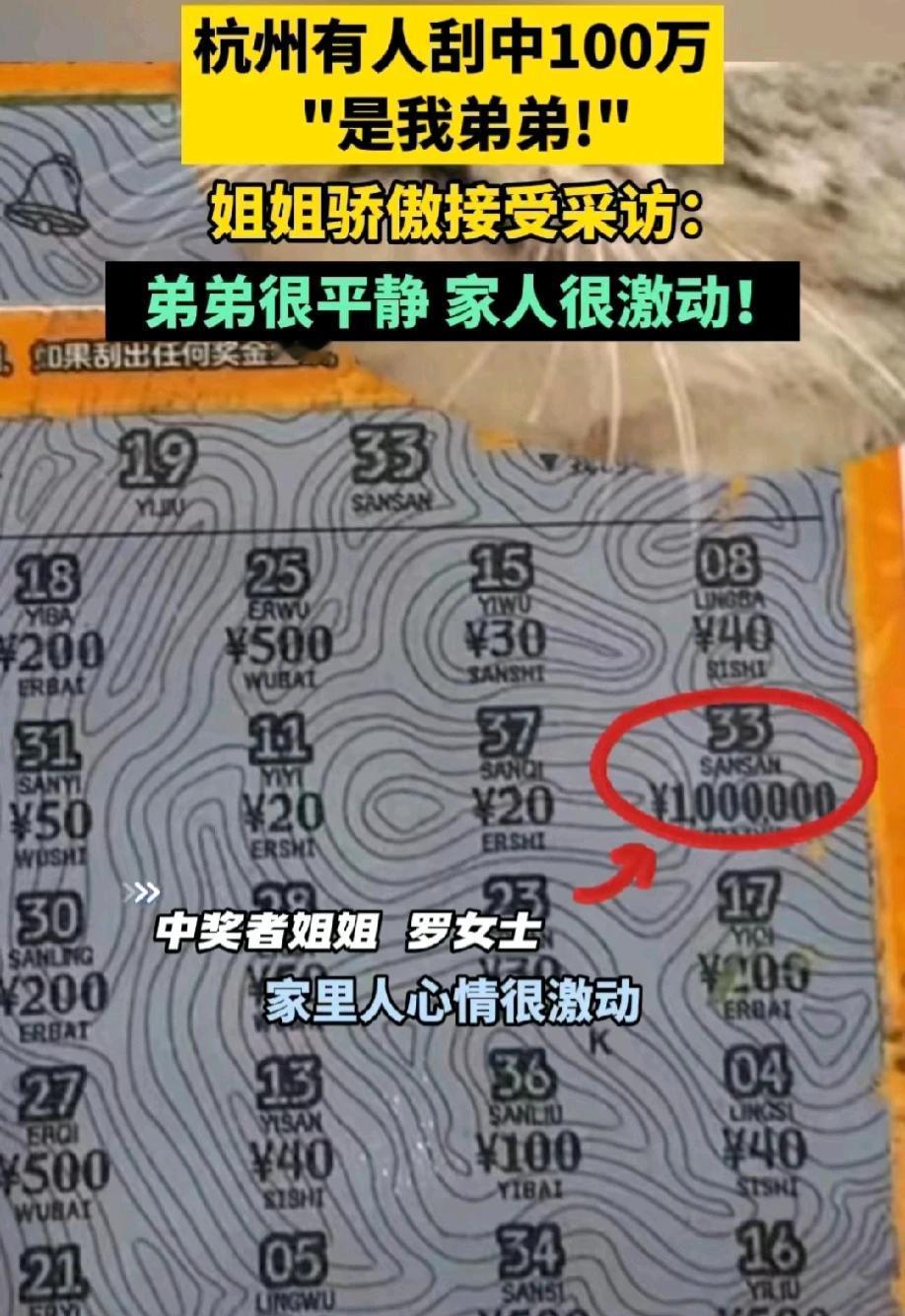 “姐,我中了100万。”电话那头,弟弟很平静的说道。