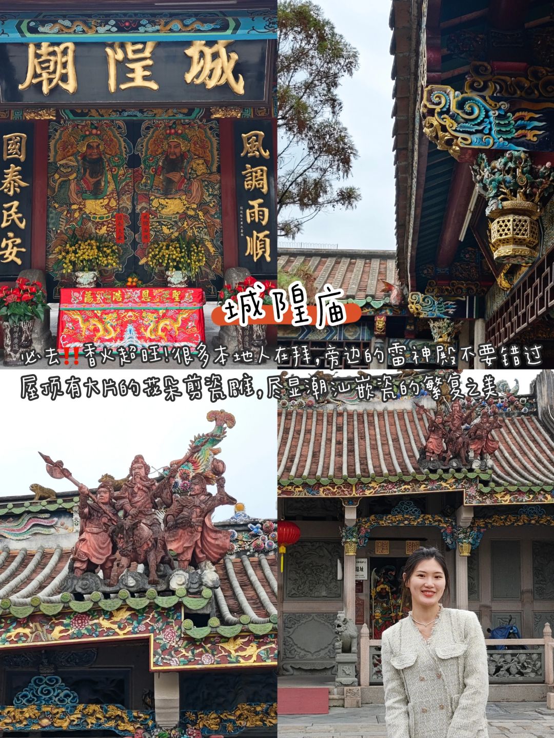 🔺城隍庙:必去‼️香火超旺!很多本地人在拜,旁边的雷神殿不要错过,屋顶有大片的花朵剪瓷雕,尽显潮汕嵌瓷的繁复之美