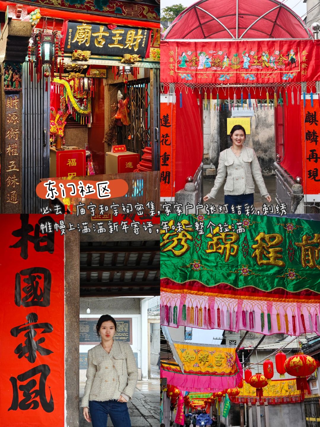 🔺东门社区:必去‼️庙宇和宗祠密集,家家户户张灯结彩,刺绣帷幔上满满新年寄语,年味一整个拉满