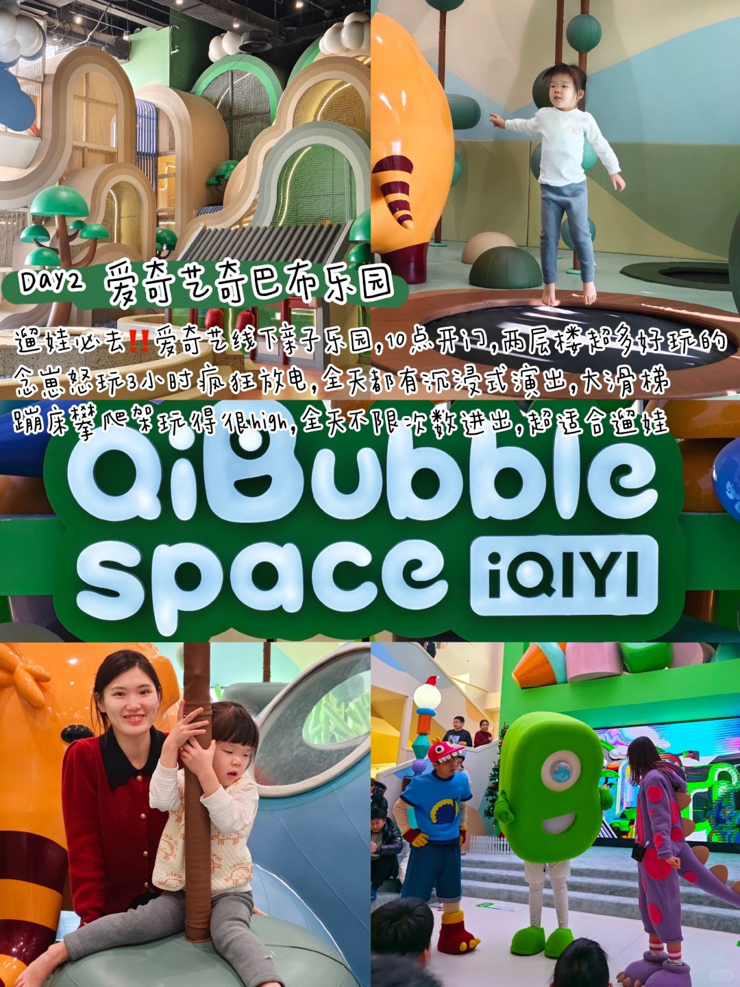 🔸奇巴布乐园:遛娃必去‼️爱奇艺线下亲子乐园,10点开门,早餐后直奔奇巴布乐园,两层楼超多好玩的,念崽怒玩3小时疯狂放电,全天都有沉浸式演出(但我觉得不如上周吧嗒八达演出好玩)大滑梯蹦床攀爬架玩很high,全天不限次数进出,娃很开心