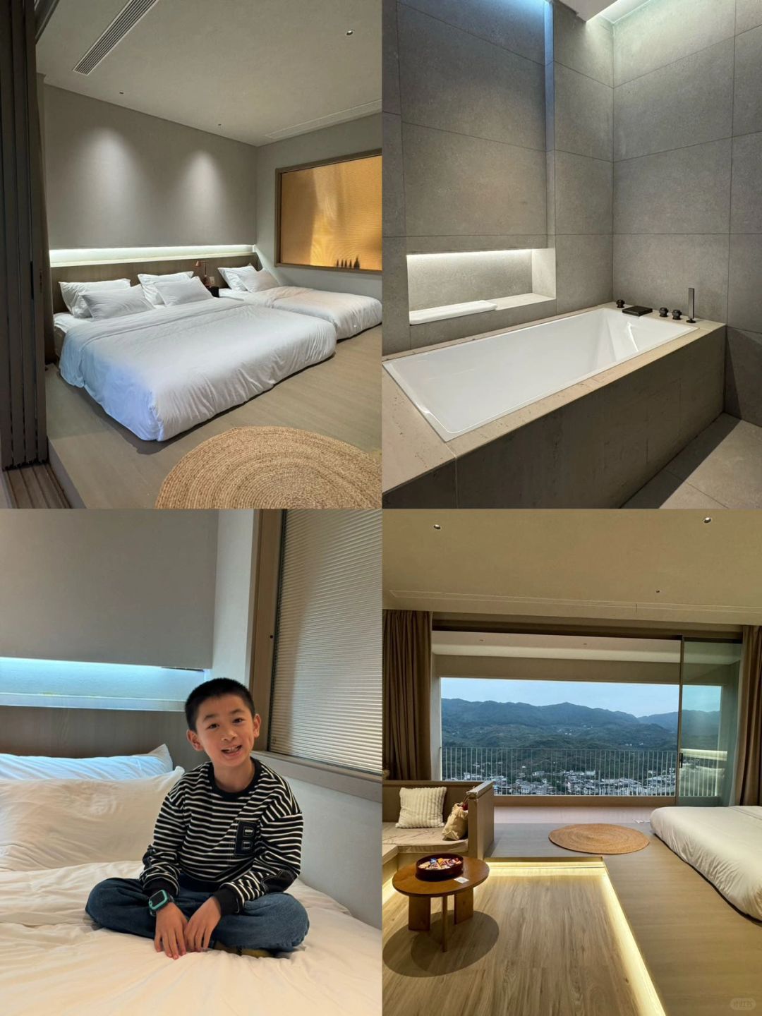 🌟🌟浮岩间的房间一共🈶八间,每一个房间都很大,我们是定的亲子房,房间宽敞明亮、有着超级大的露台、浴缸🛁……设施齐全,舒适度满满!在这里可以看到日出和日落及俯瞰整个小镇的美景,大小盆友表示很满意👍