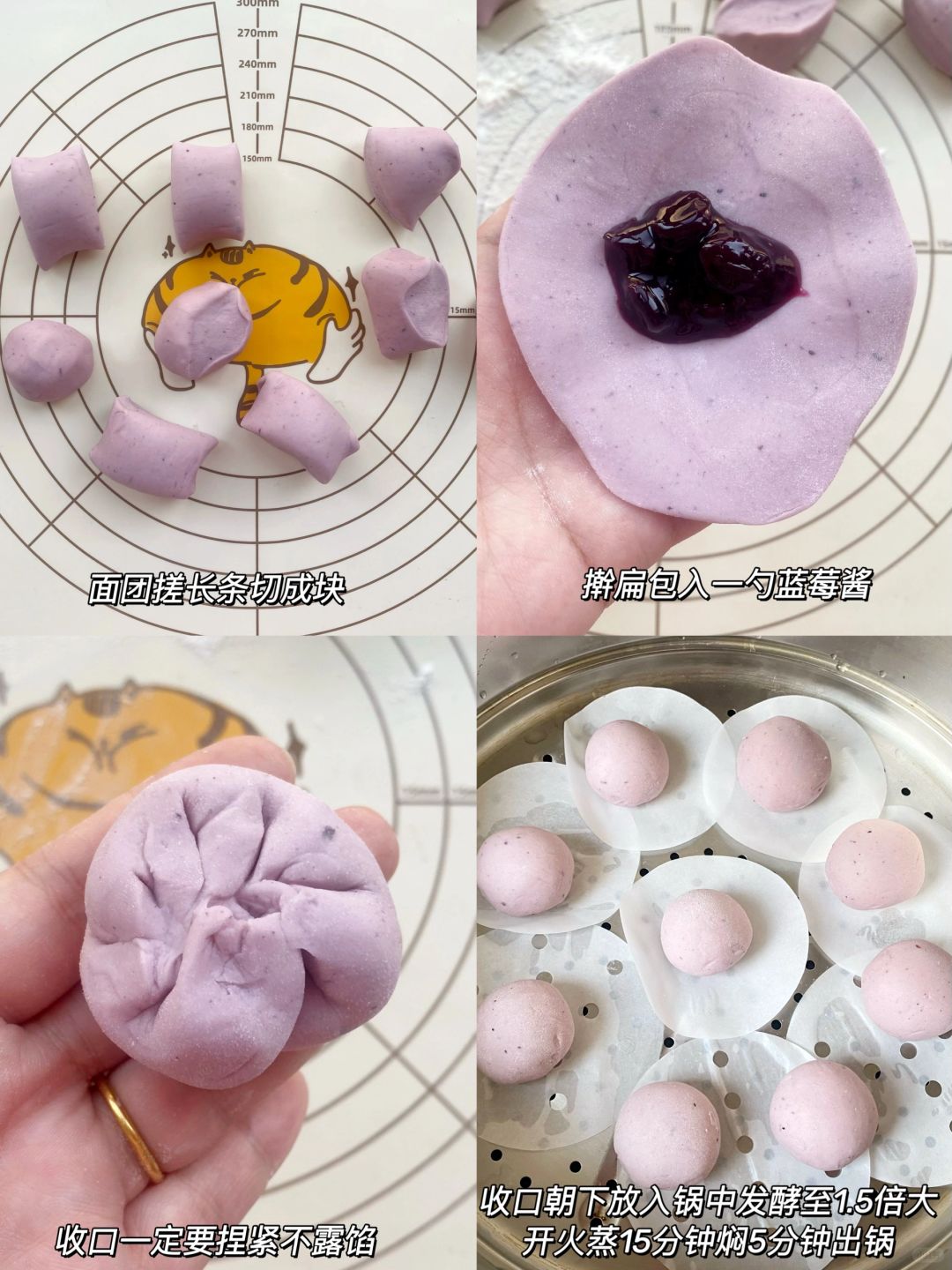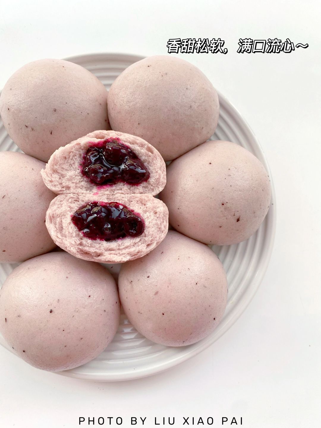 💟今天我又用蓝莓做了好吃的小馒头,用蓝莓酱做了夹心,酸酸甜甜,一口爆浆,宝宝敲爱了~刚出锅就直接炫了两个,没有宝宝会拒绝香甜的小馒头,做法简单,快安排上吧~