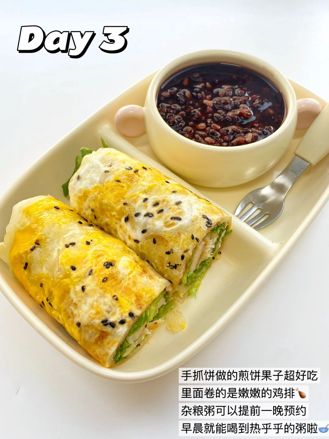 🍗鸡排煎饼果子+🥣杂粮粥