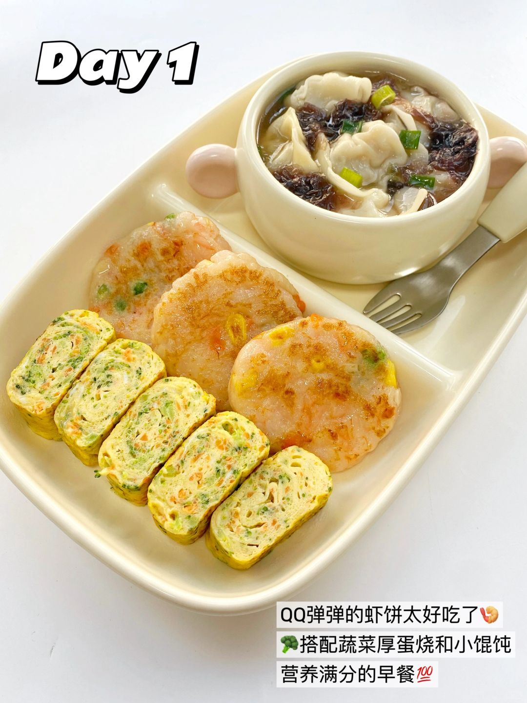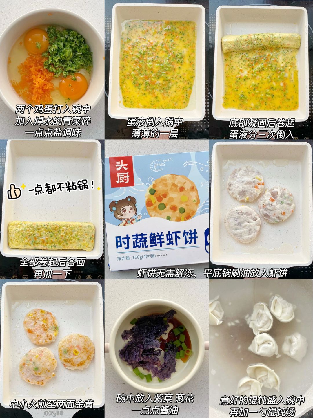 🥦时蔬厚蛋烧+🍤虾饼/紫菜馄饨