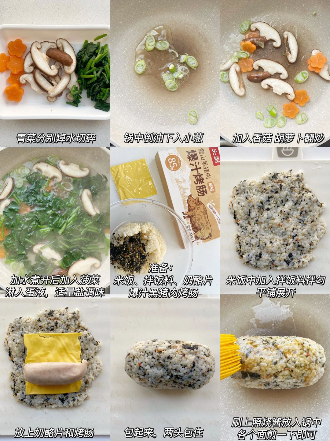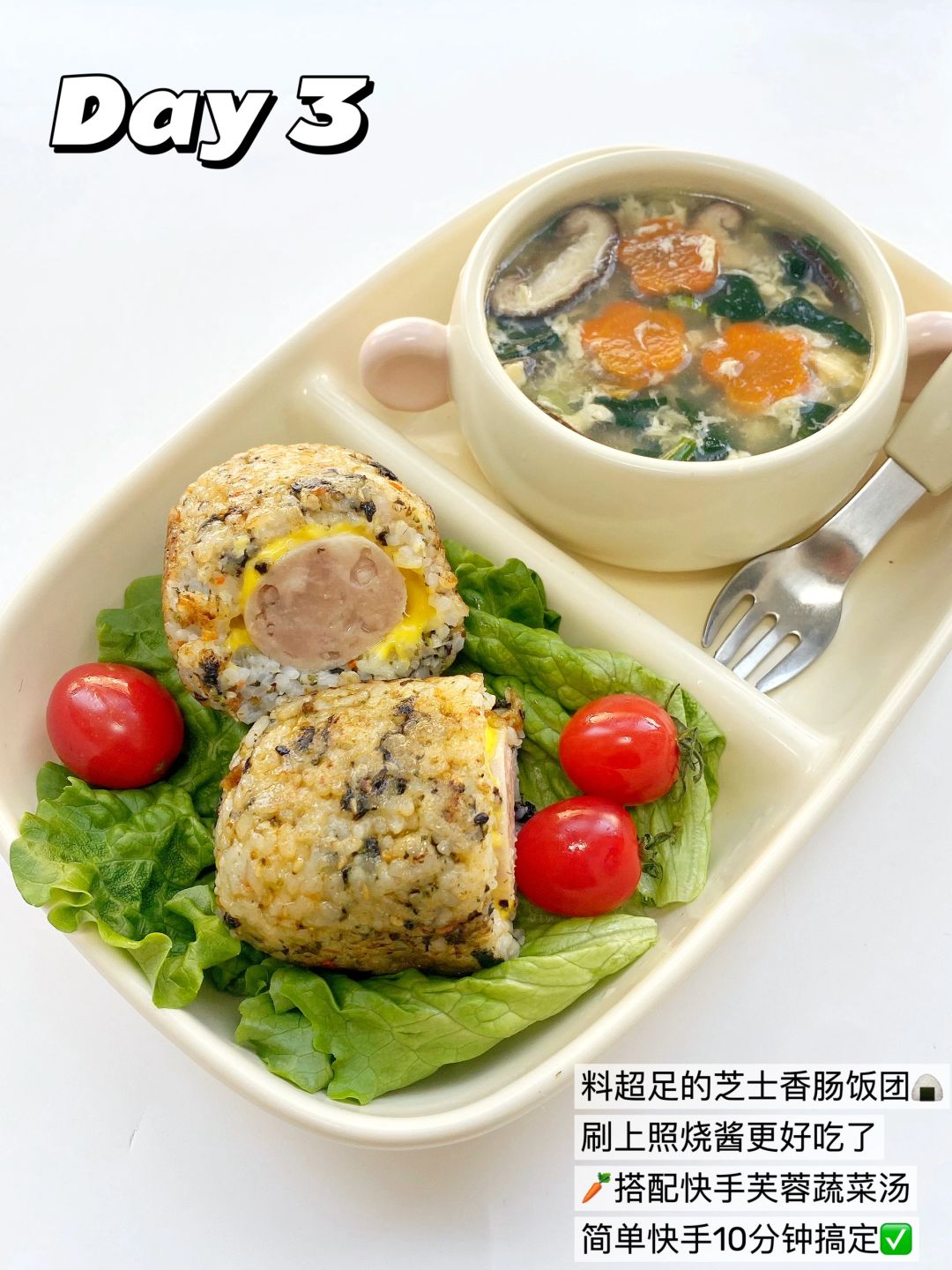 🍙香肠芝士饭团+🥬芙蓉蔬菜汤