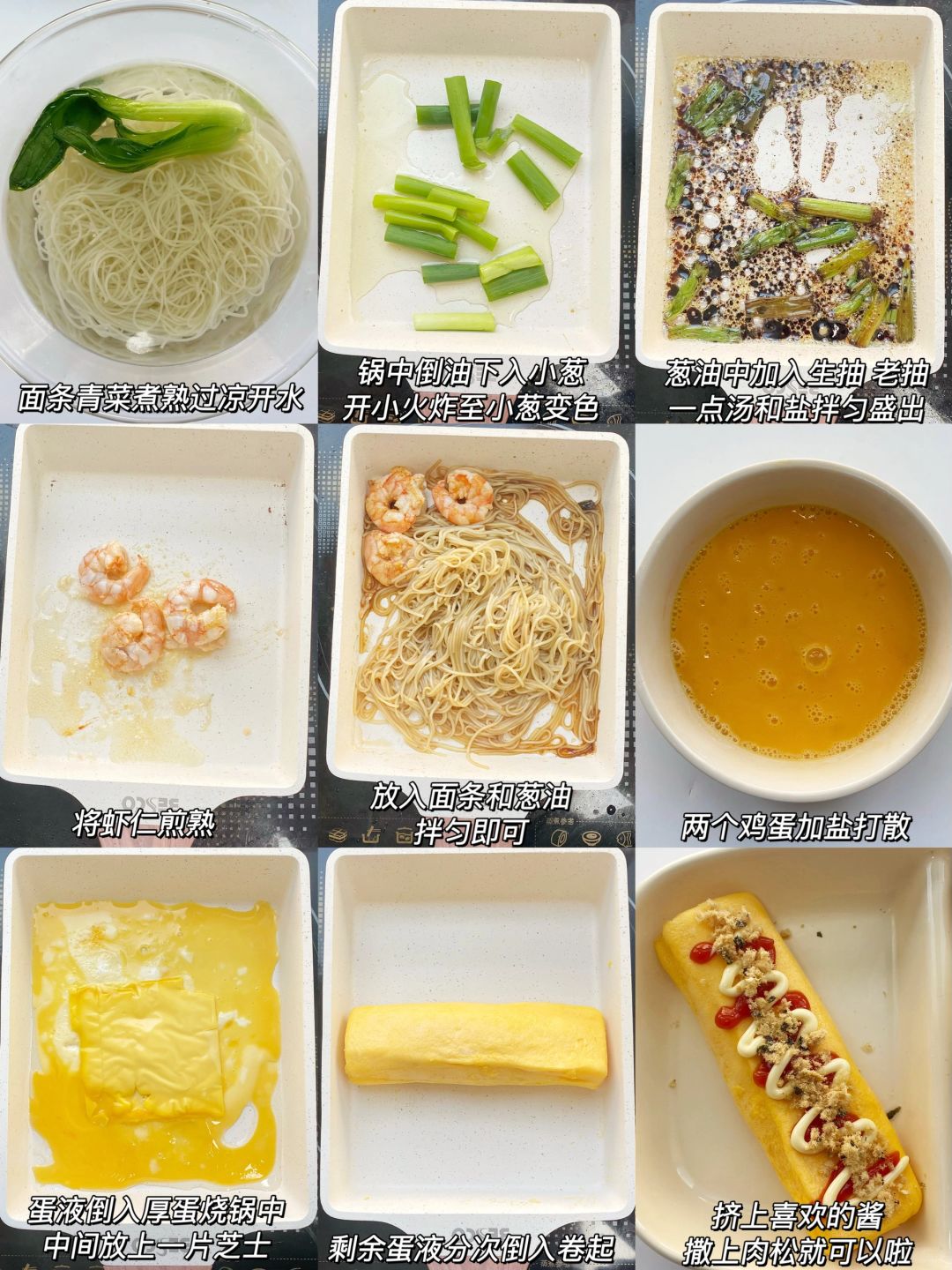 🍳流心厚蛋烧+🍜虾仁葱油拌面