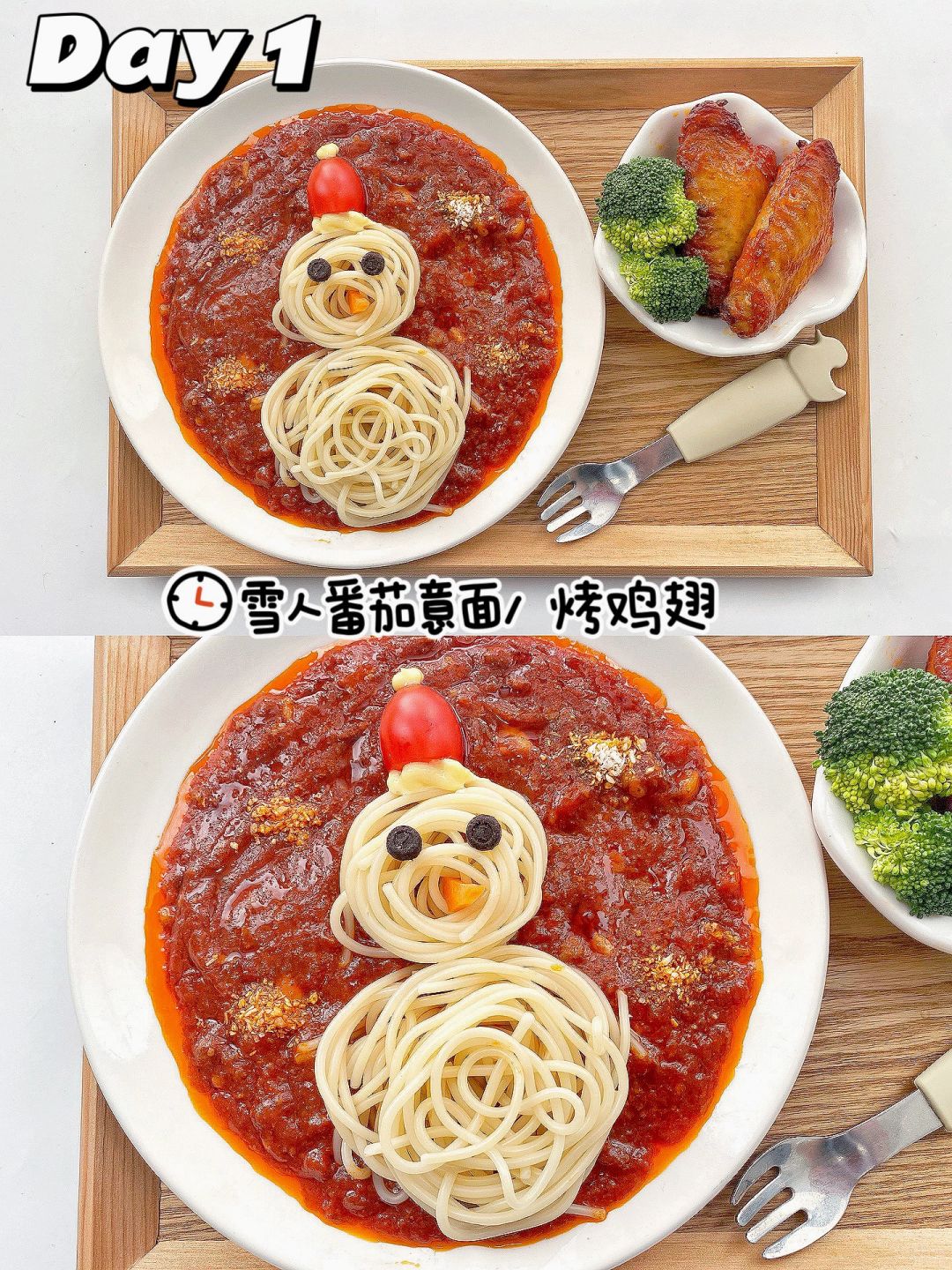 ⛄️雪人番茄意面+奥尔良烤鸡翅