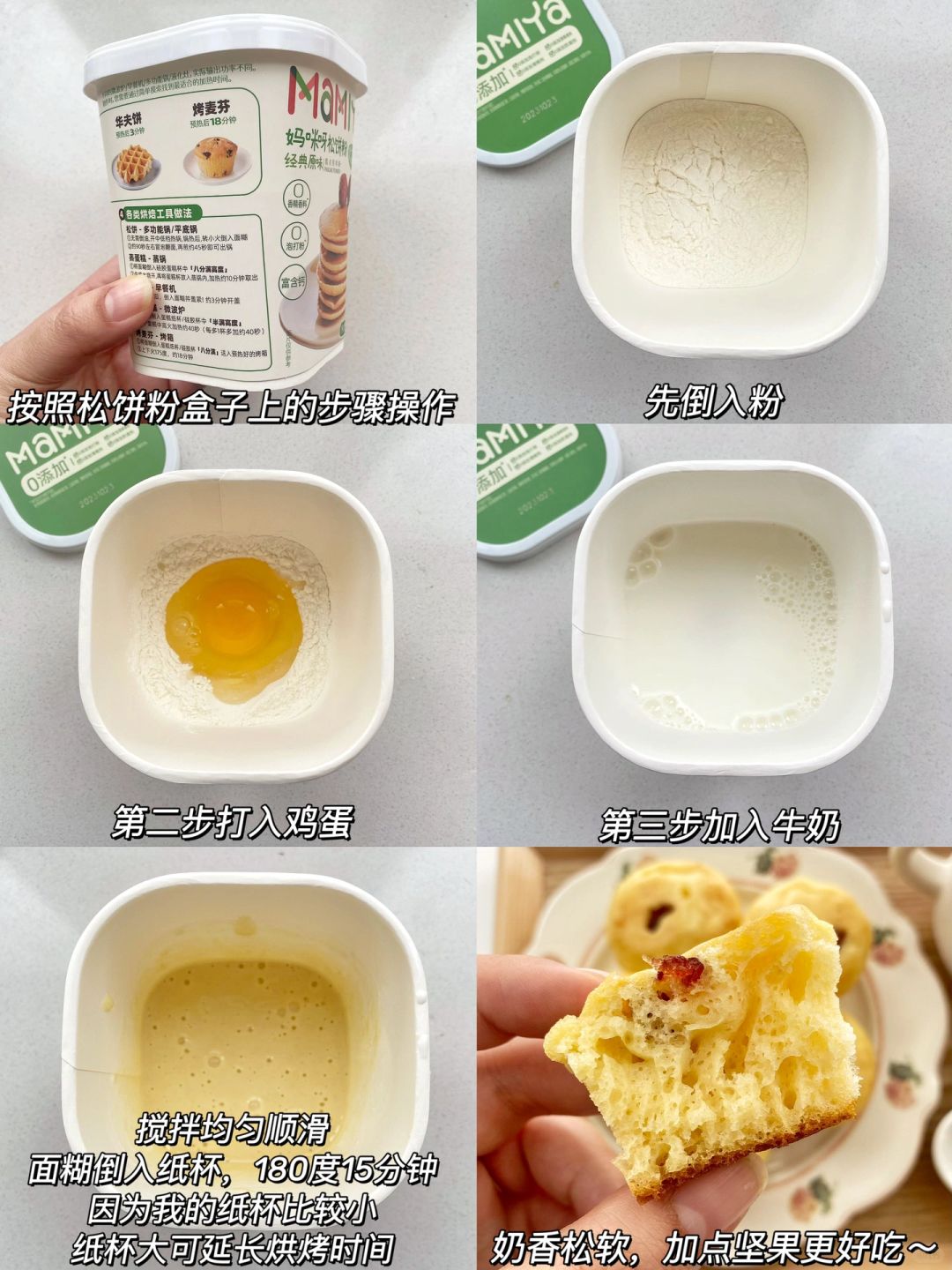又来解锁松饼粉的新吃法了,直接烤成小蛋糕也不错哦,加点坚果干更好吃。肉肉肠也是满口肉肉,绝绝好吃!
