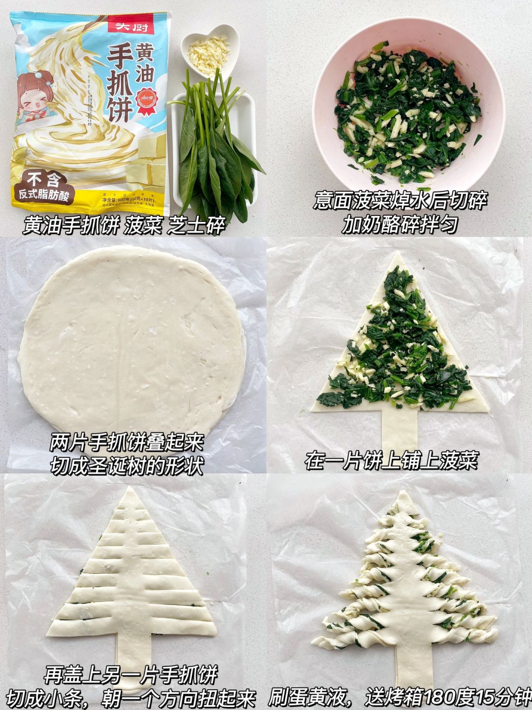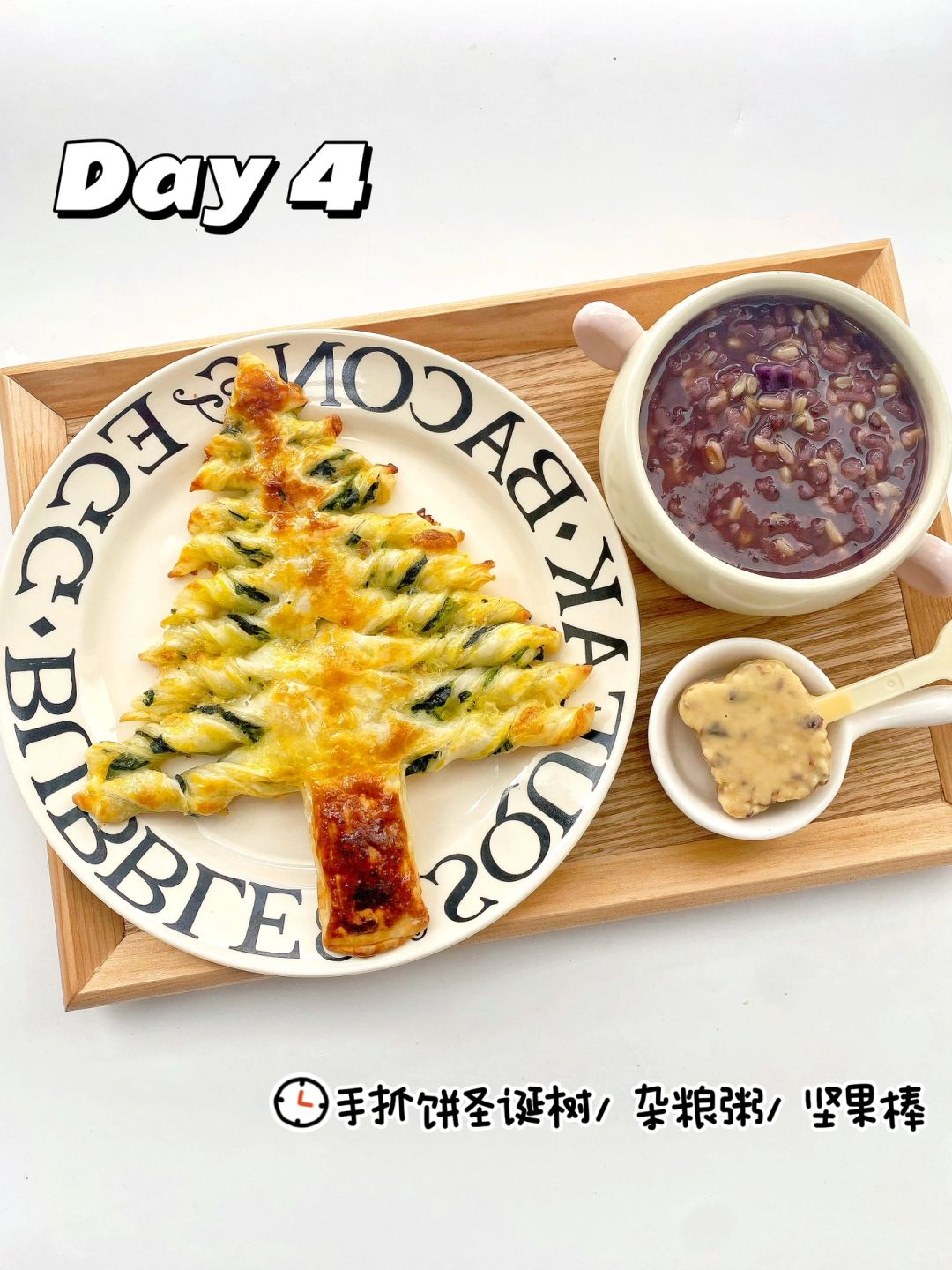 🎄手抓饼圣诞树+杂粮粥+坚果棒