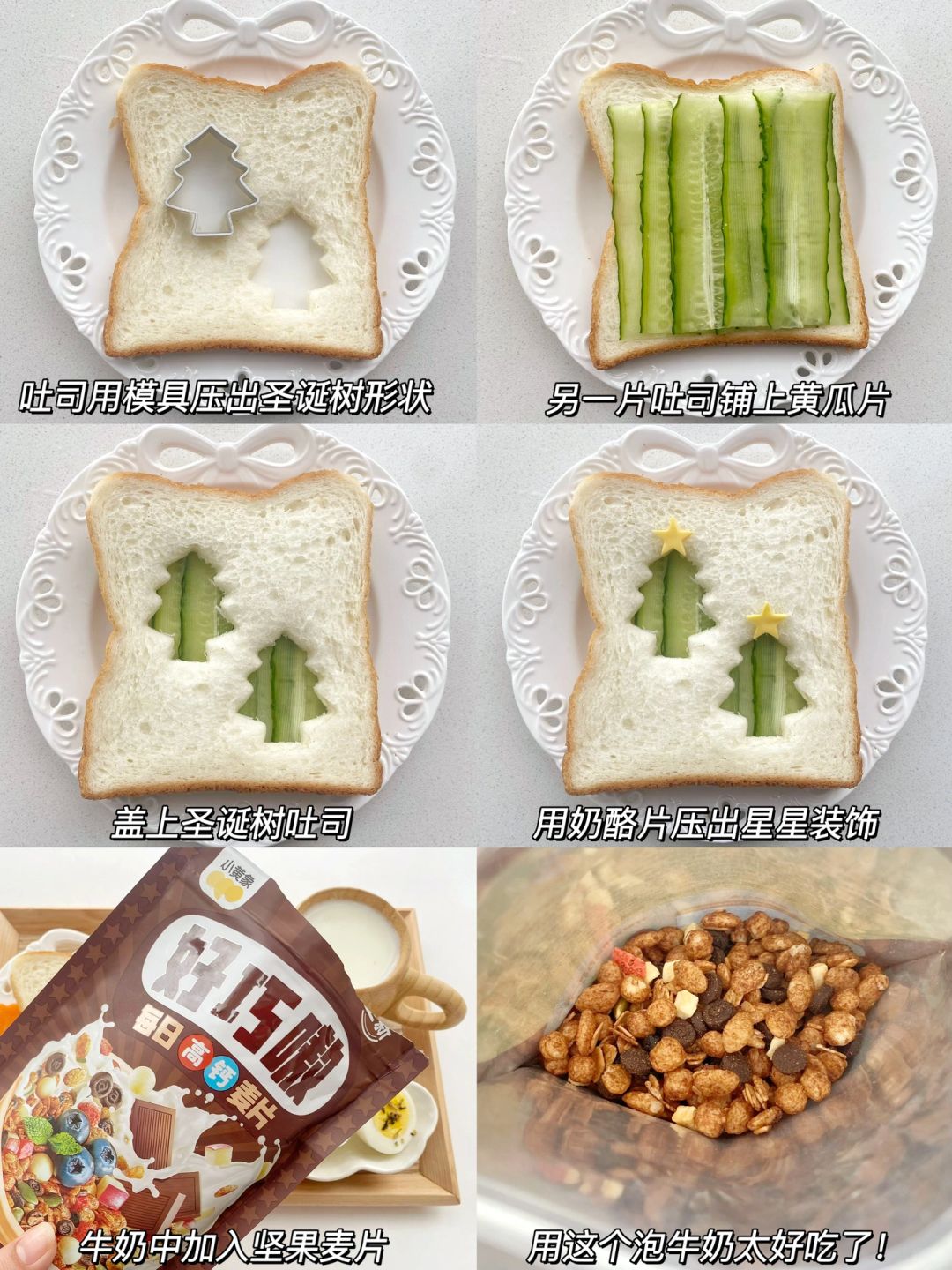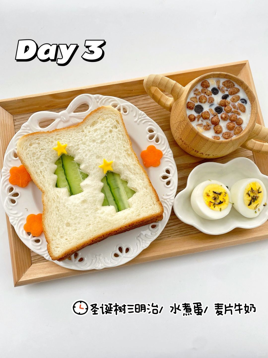 🎈圣诞树三明治+水煮蛋+麦片牛奶