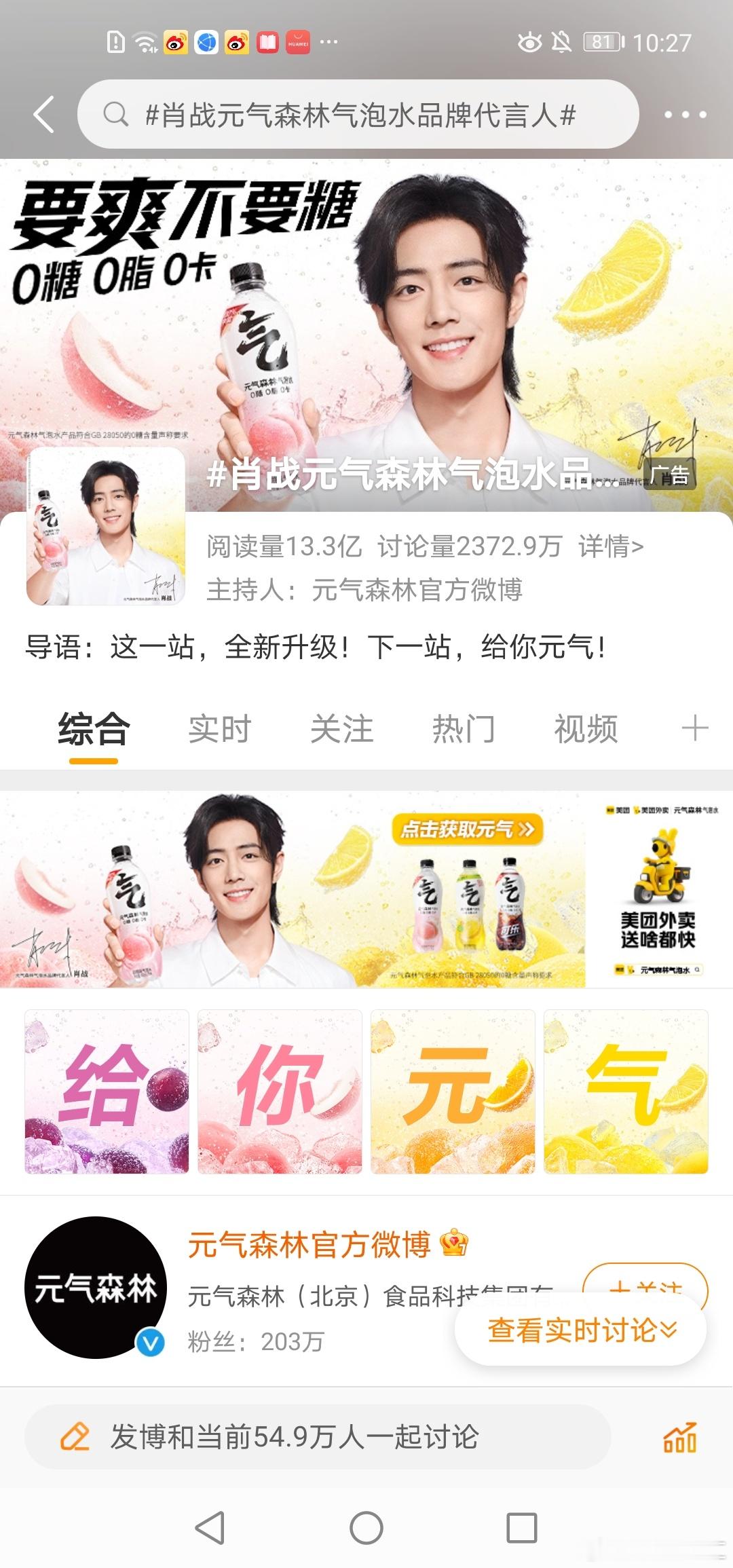#肖战元气森林气泡水品牌代言人#