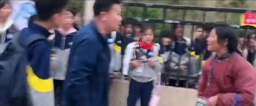 其中有一名女网友,也许是某位学生的家长或者是路人,看到这一幕,拿出手机将此情景拍摄,然后上传网络。