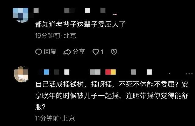 也有网友评论,活成摇钱树,不死不休能不委屈。