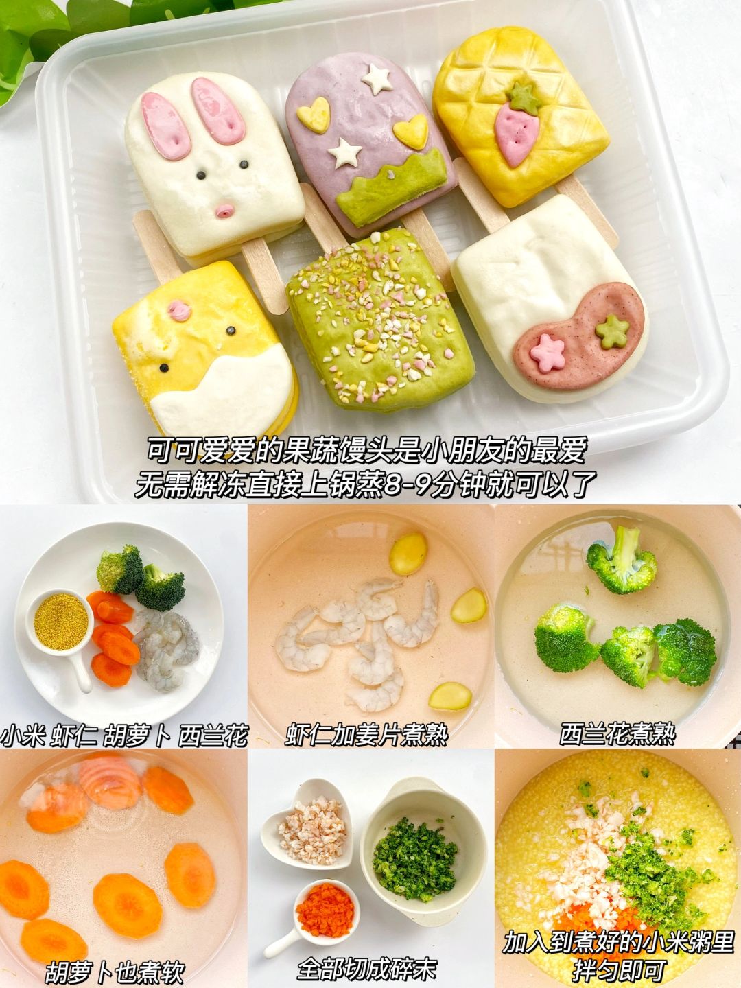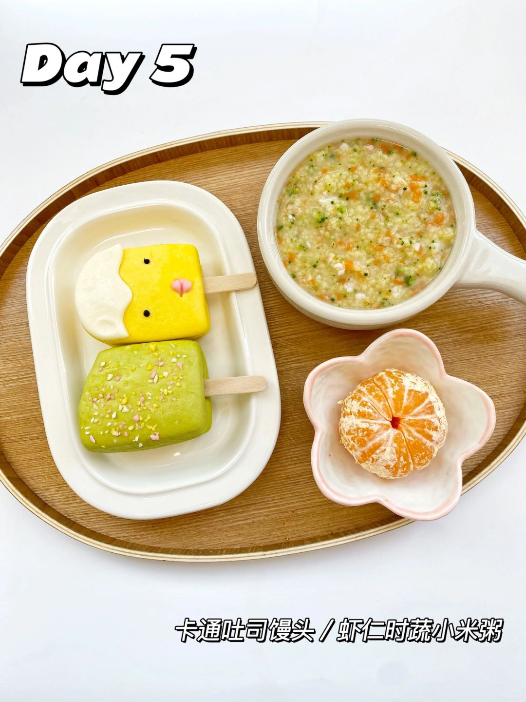 🍤卡通吐司馒头+虾仁时蔬小米粥+桔子