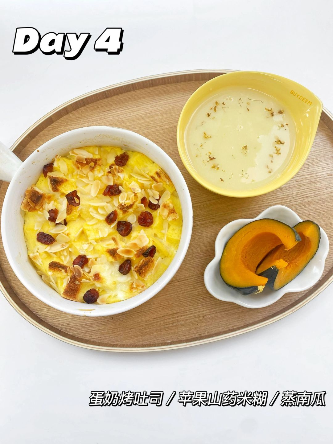 🍳蛋奶烤吐司+苹果山药米糊+蒸南瓜