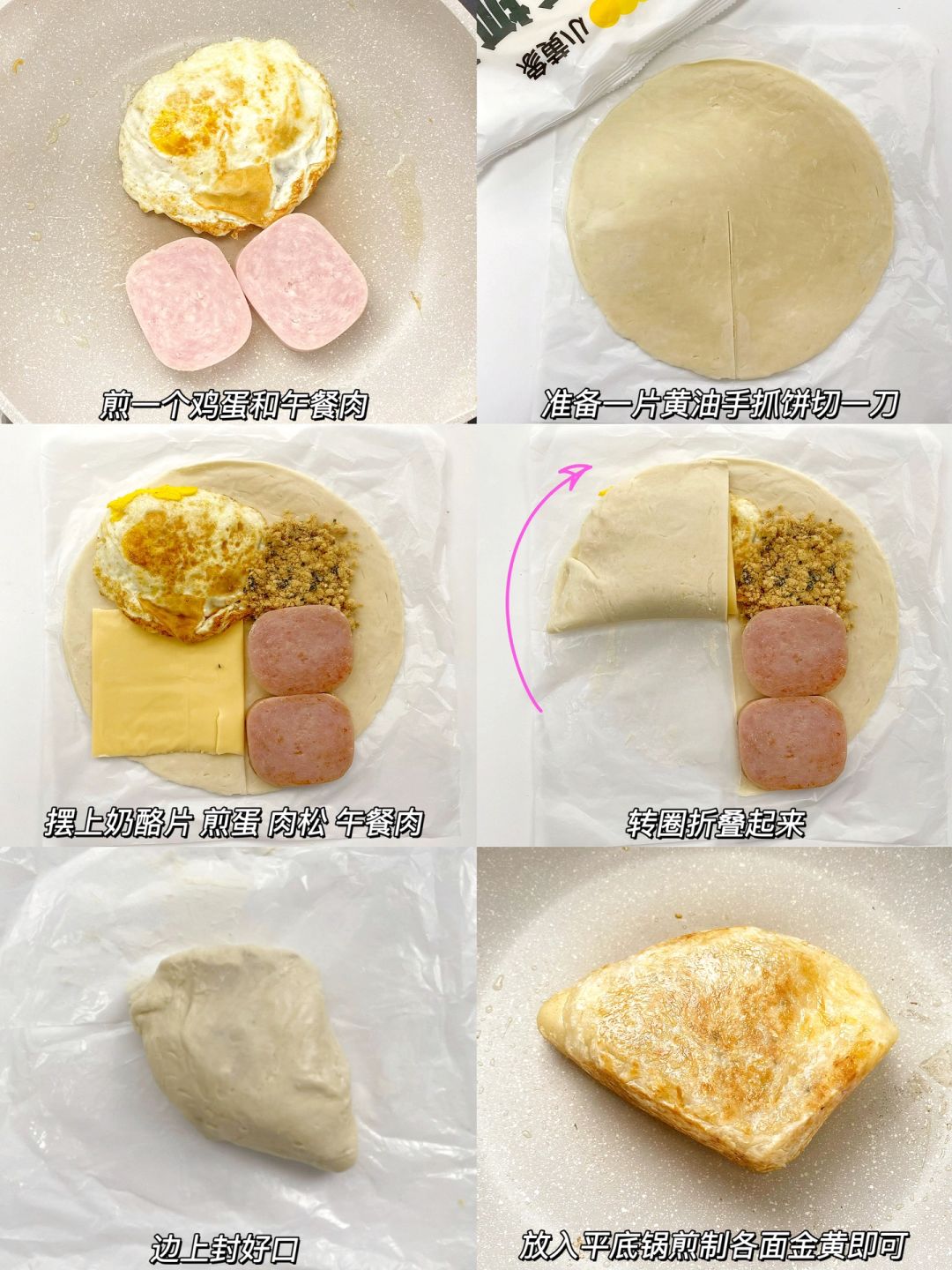 终于解锁了这个手抓饼三明治,里面的四种食材可以根据喜好更换。做法上稍微改良了一下,省去了刷蛋液松空气炸锅,直接放到锅里煎至各面金黄就可以了,一样的酥脆好吃。