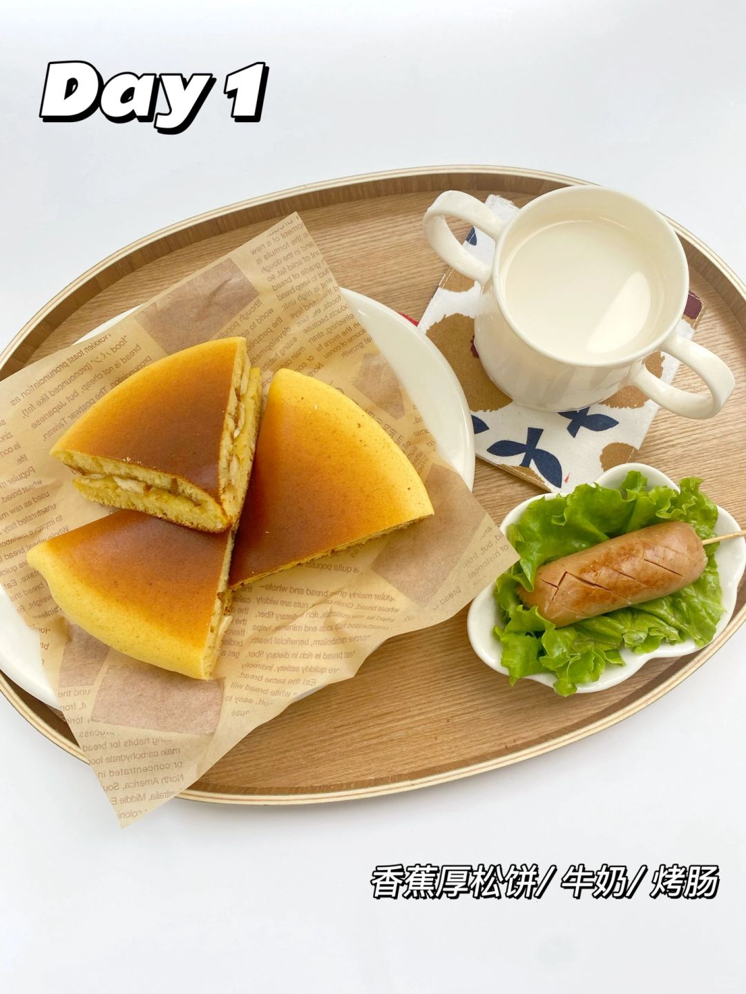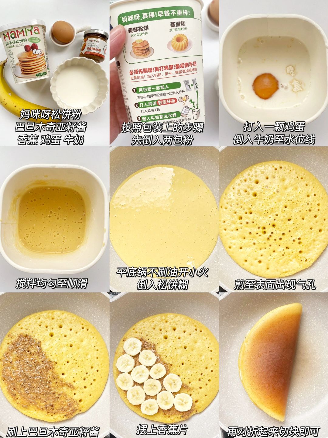 香蕉厚松饼我是用松饼粉加鸡蛋、牛奶做的,简单方便。做出来的厚松饼是蛋糕的口感哦,也可以用来做纸杯蛋糕和华夫饼都可以。