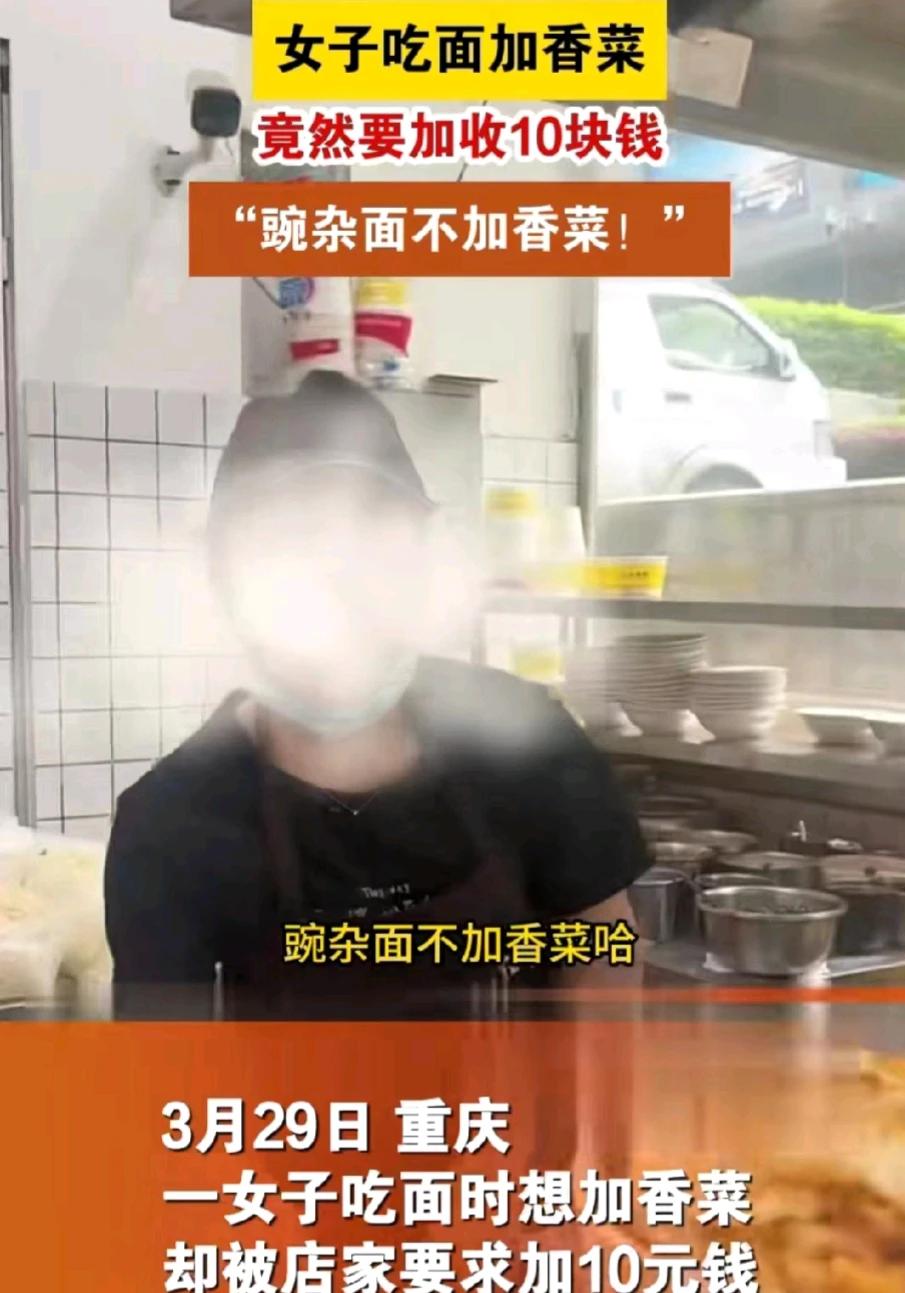“豌杂面不加香菜!”重庆,一女子点了四碗豌杂面,想要加香菜。不料,店家却要求女子加10元。女子很生气,因为她们是四个人来消费的,店家竟然这么小气。双方发生了争吵。那么,点了豌杂面真的不能免费加香菜吗?