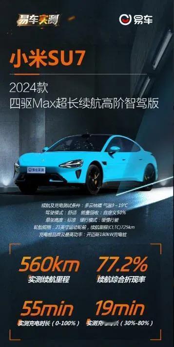 xiaomi SU7续航成绩揭晓后,确实引发了一阵热议。原先懂车帝对xiaomi SU7 Max版本的续航测试结果为续航达成率79.4%,这一数据让一些人感到惊讶,毕竟在配备19寸米其林低滚阻轮胎的情况下,能达到643km的续航成绩确实相当出色。因此,怀疑之声四起。 不过,最近易车再次进行了测试,这次他们为xiaomi SU7换上了21英寸运动轮毂。结果实测续航为560km,续航折现率为77.2%。考虑到这是一款重达2吨的车型,并且配备了运动性能更为突出的21英寸轮毂,这一成绩在业内确实堪称佼佼者。 对于xiaomi SU7的续航表现,我们不能简单地归因为“米粉给雷军面子”或“喜欢xiaomi就无脑入手”。实际上,无论是续航成绩还是驾驶体验,包括众多细节,xiaomi SU7都展现出了其不俗的实力。这些数据并非空穴来风,而是经过专业机构的实际测试得出的。 每个人对于一款车型的喜好和评价标准可能有所不同。但无论如何,我们都应该尊重事实和数据,以客观的态度来评价一款车型的性能和表现。对于xiaomi SU7来说,它的续航成绩确实令人印象深刻,这也为其在新能源汽车市场上赢得了一席之地。 xiaomi SU7的续航成绩不仅体现了其在技术研发和制造工艺上的实力,也反映了其对于消费者需求和市场趋势的敏锐洞察。