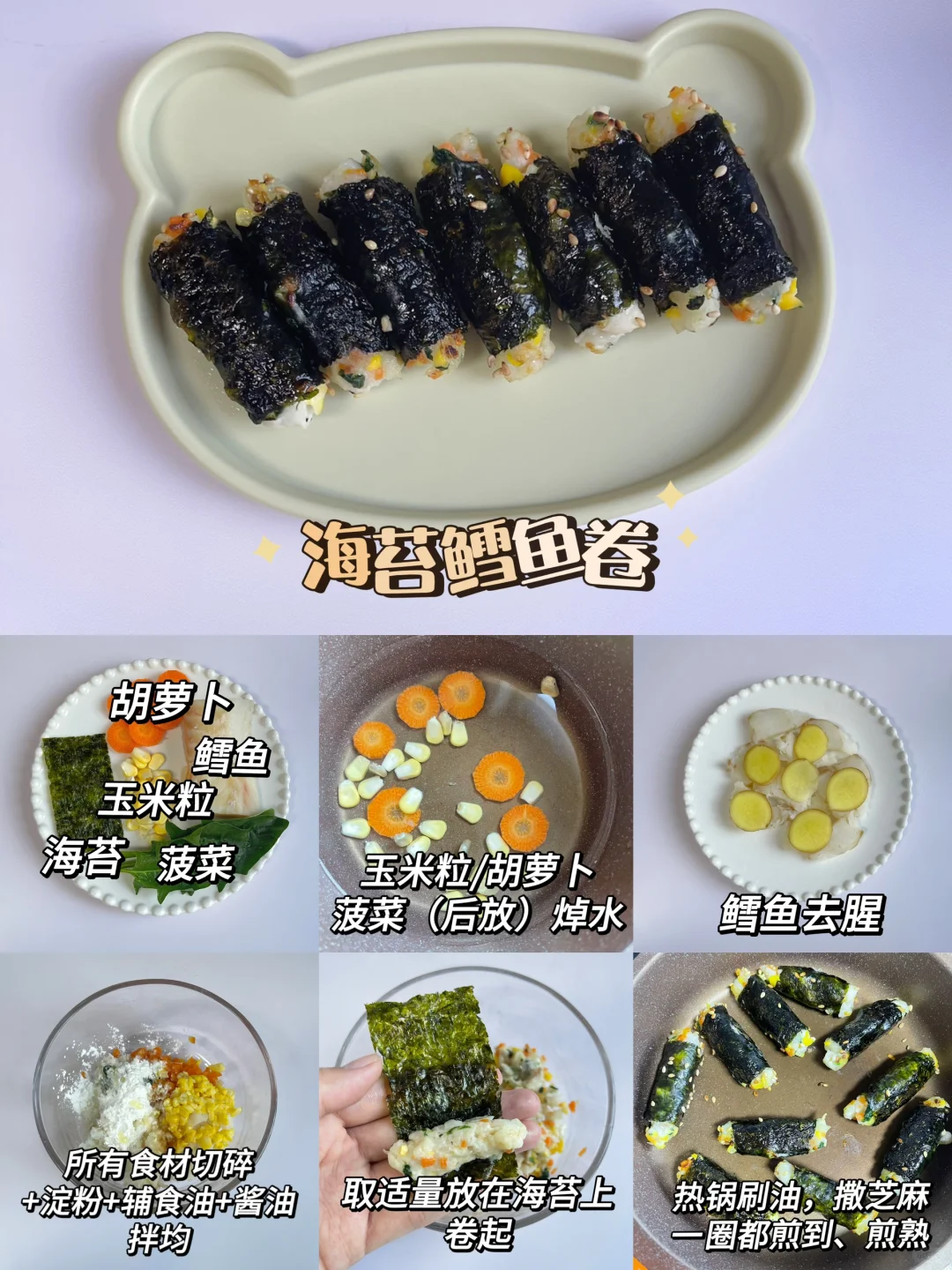 一岁三个月宝宝三餐吃啥|海苔鳕鱼卷😋
