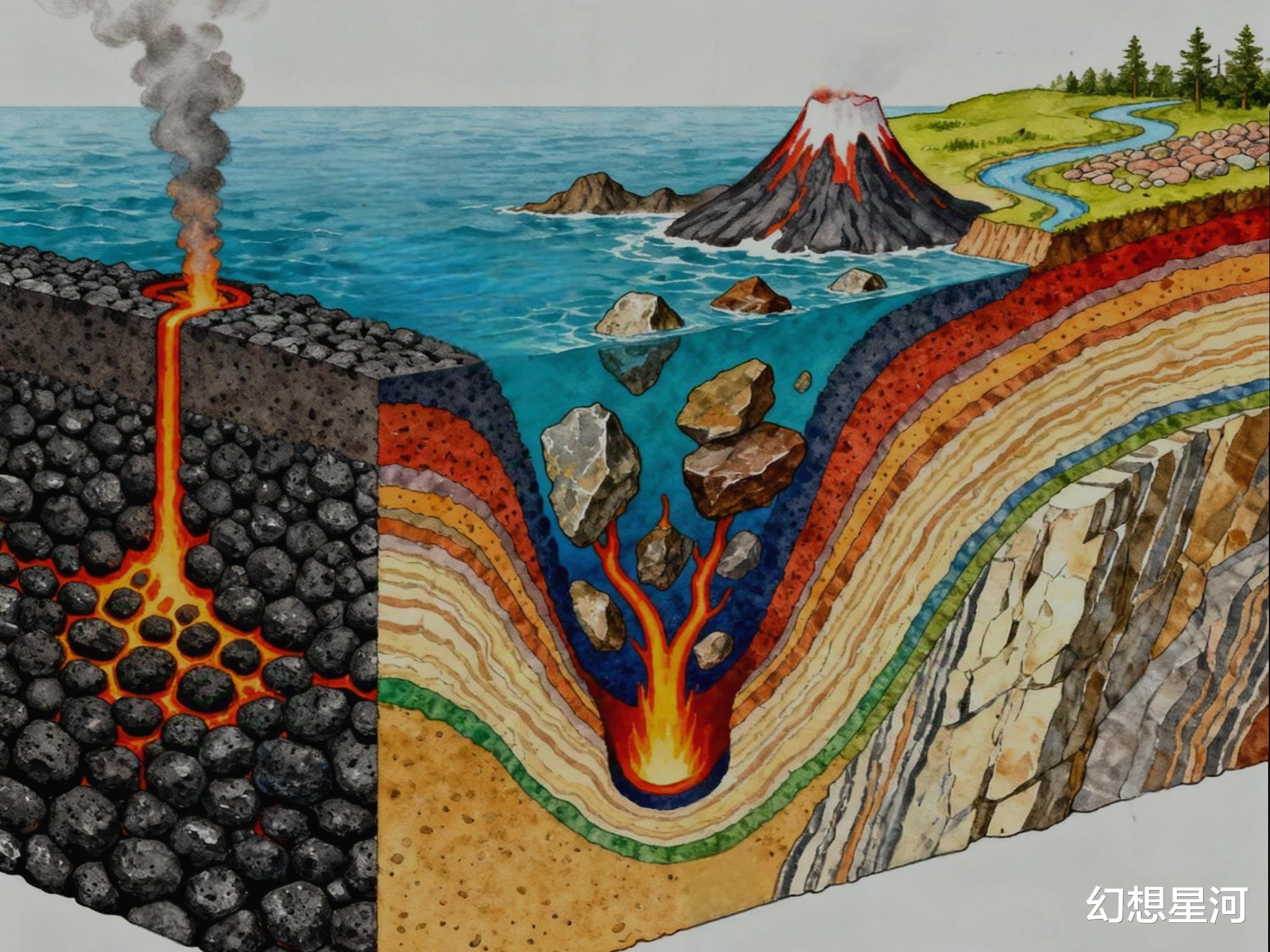 部分岩石被挤到地壳深部变质,再被侵蚀后露出地表,另一部分跟着俯冲板片沉入地幔,彻底融化,成为下一代玄武岩的原料。地球每年都会回收约二十亿吨岩石,相当于把一座喜马拉雅山吞进去再吐出来,只是这个过程太慢,人类根本感受不到。
