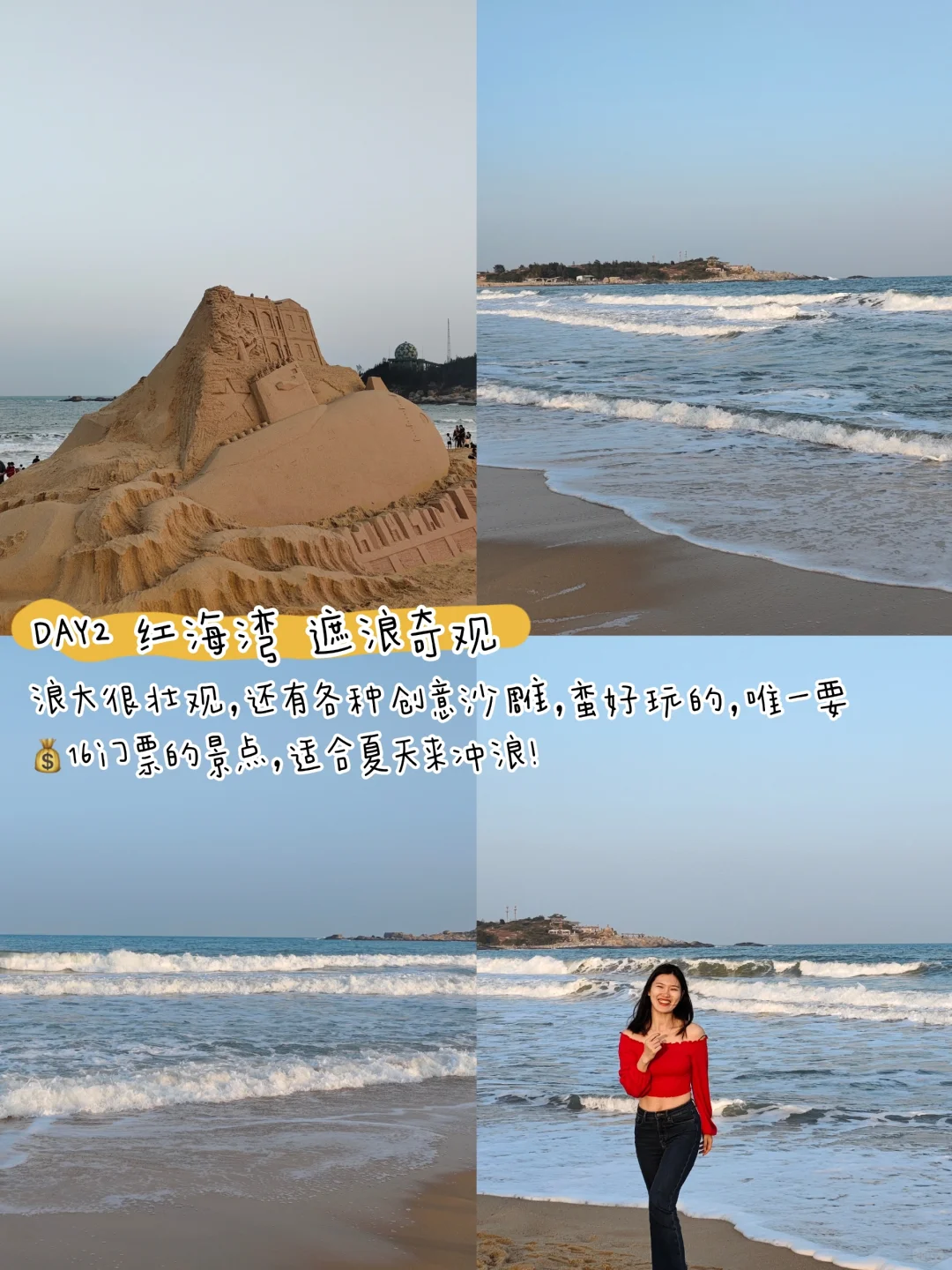 ▪️遮浪奇观:浪大很壮观,还有各种创意沙雕,蛮好玩的,唯一要💰16门票的景点,适合夏天来冲浪!