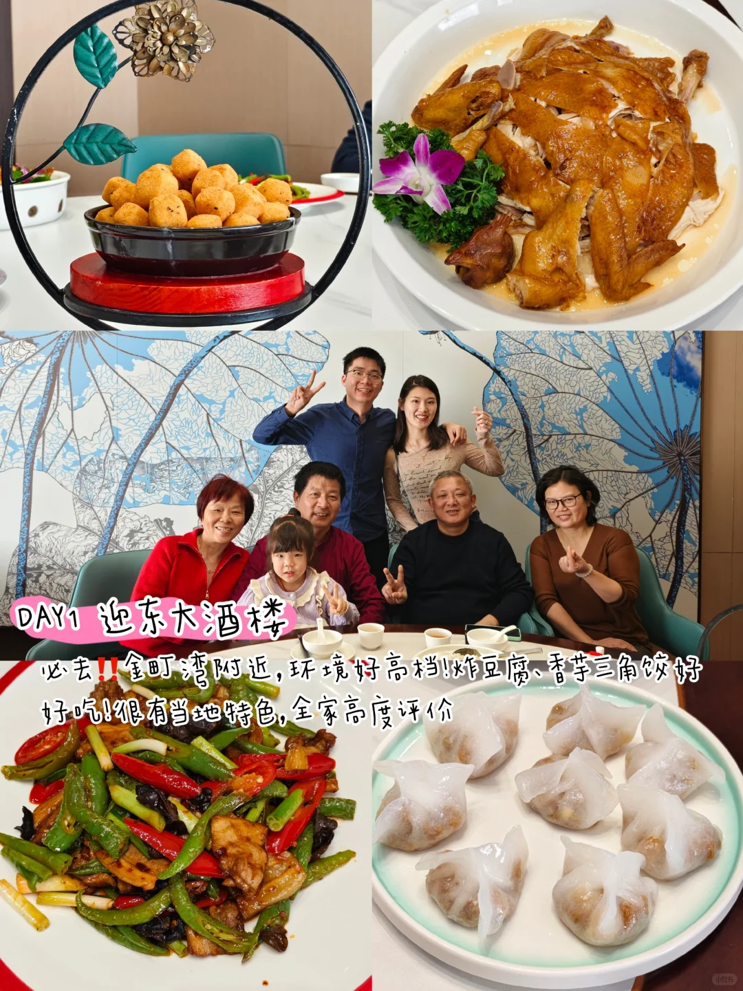 1⃣️13:00👉🏻迎东大酒楼:必去‼️金町湾附近,环境高档!炸豆腐、香芋三角饺好吃!很有当地特色,全家高度评价