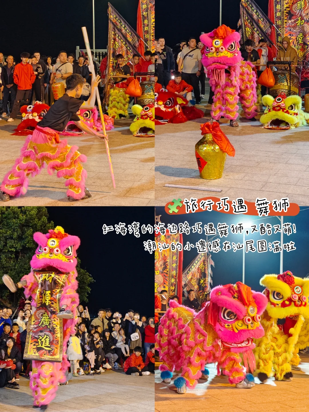 🧩旅行巧遇,红海湾的海边路巧遇舞狮,又酷又萌!潮汕的小遗憾在汕尾圆满啦