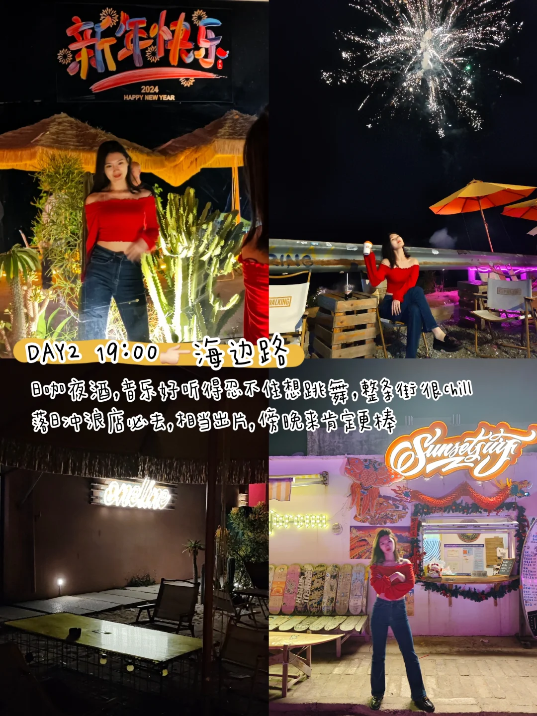 3⃣️19:00👉🏻海边路:日咖夜酒整条街很chill,落日冲浪店必去