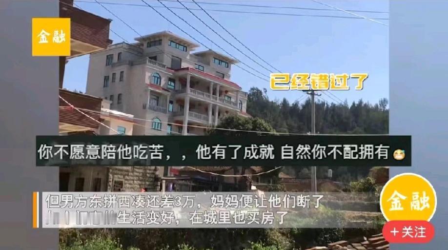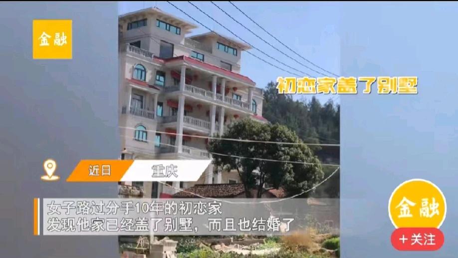重庆,一女子经过初恋的家,发现一栋大别墅矗立。女子很吃惊,因为十年前,初恋男友连10万元的彩礼都拿不出。想不到仅仅过了十年,初恋男友不仅在农村老家盖了大别墅,而且还在城里买了房。女子一打探,初恋男友已经成家了。女子很后悔,爱情就这样错过了!
