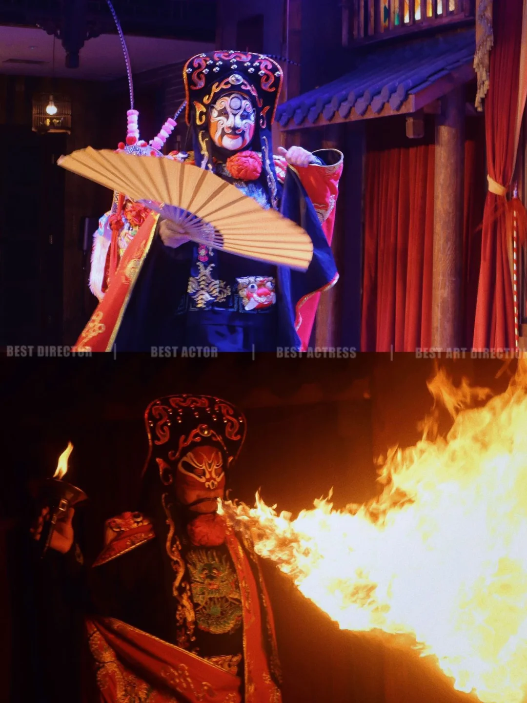 ✅喷火变脸赢得阵阵掌声,精湛的技术,感受到了咱大中国传统变脸的魅力~