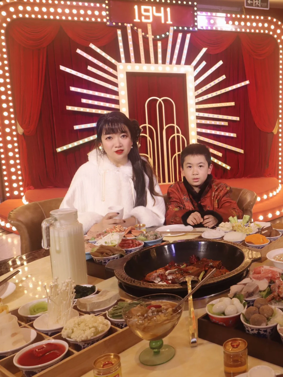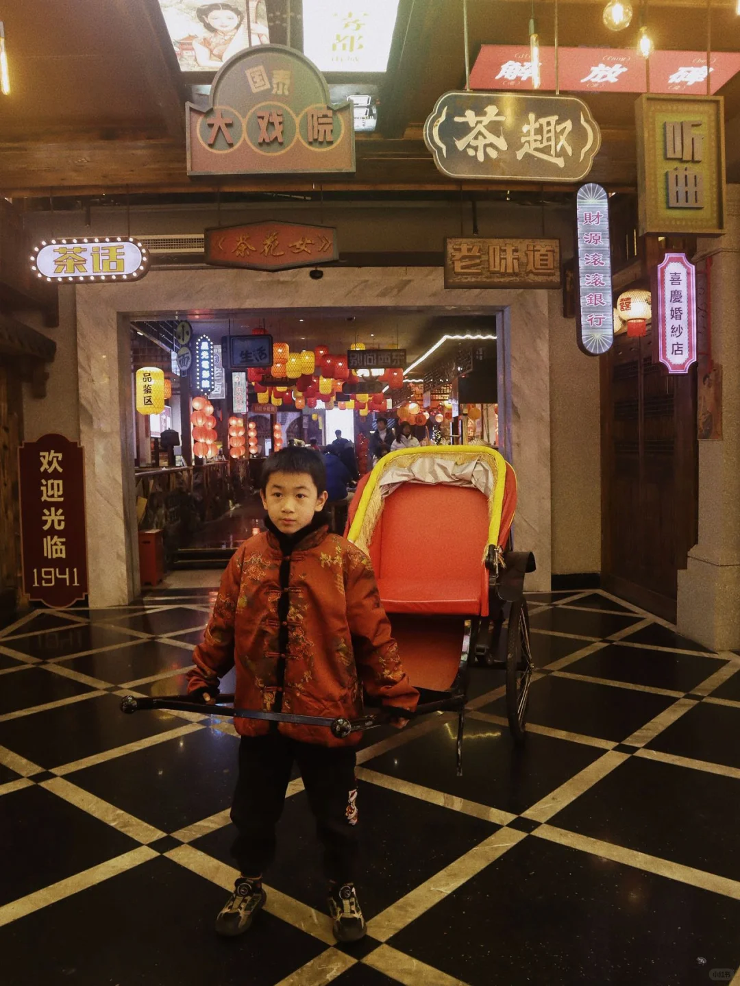 小朋友在这里玩得很开心,一边看着节目一变吃着零食,真的很惬意!晚上还吃到他心心念念已久的火锅🍲!还看到身穿旗袍的漂亮小姐姐歌舞表演🎭,边吃火锅边看表演,这日子真的太巴适了!