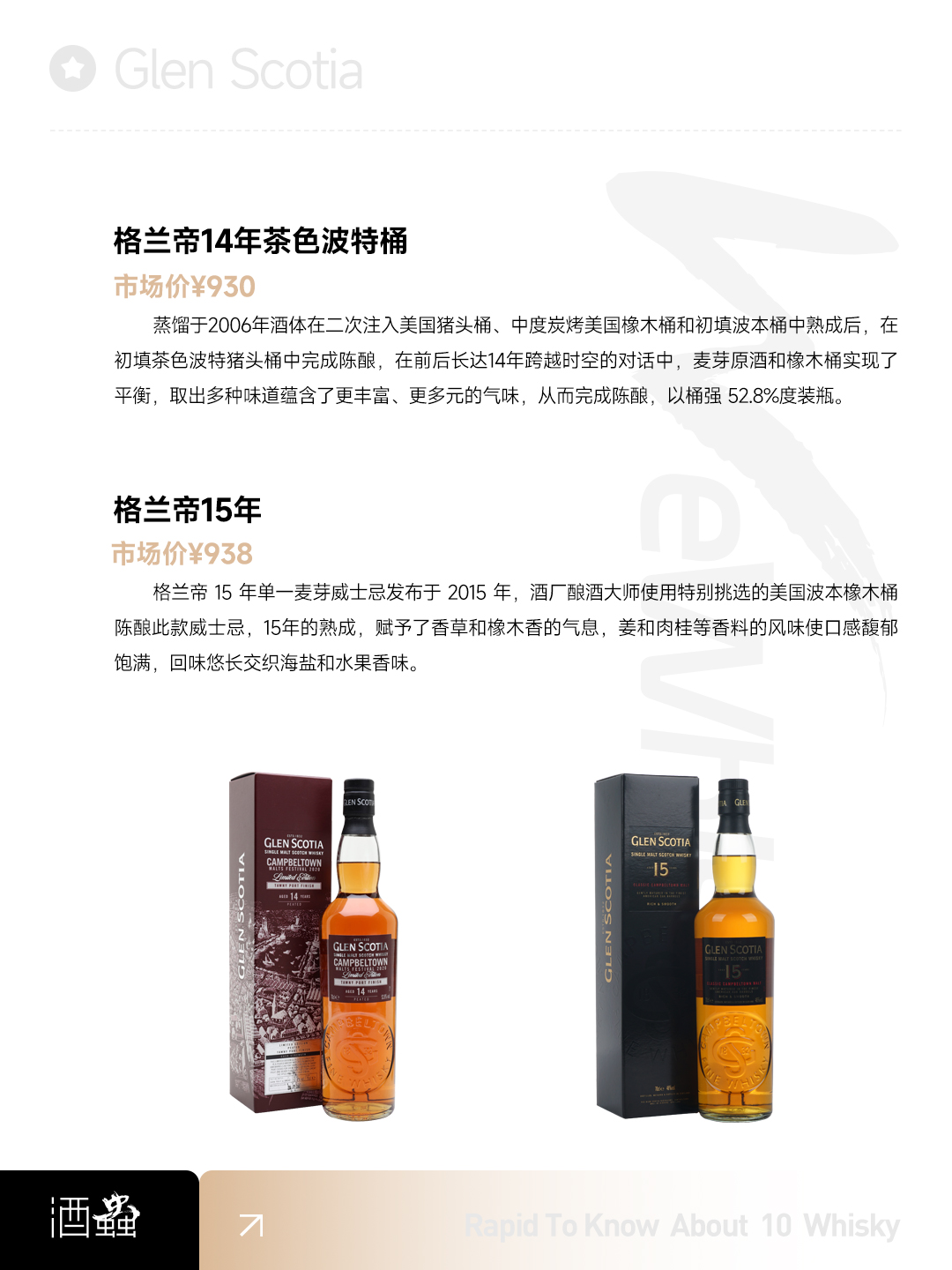 尾韵:伴随着柔和烟熏的回味,桂皮与丁香使后韵干爽舒适。