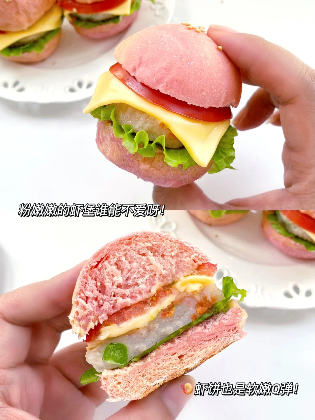 💕粉色的汉堡我搭配的是软嫩鲜美的虾饼,一口下去太满足啦!