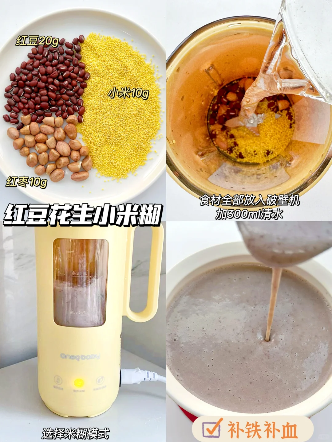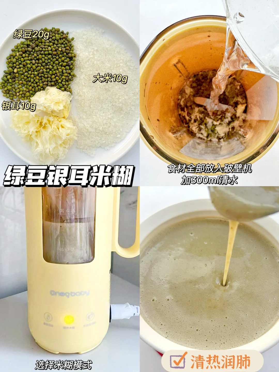 1️⃣食材的克重根据自家破壁机的容量自行调整,我一般就是45g食材+300ml左右清水。