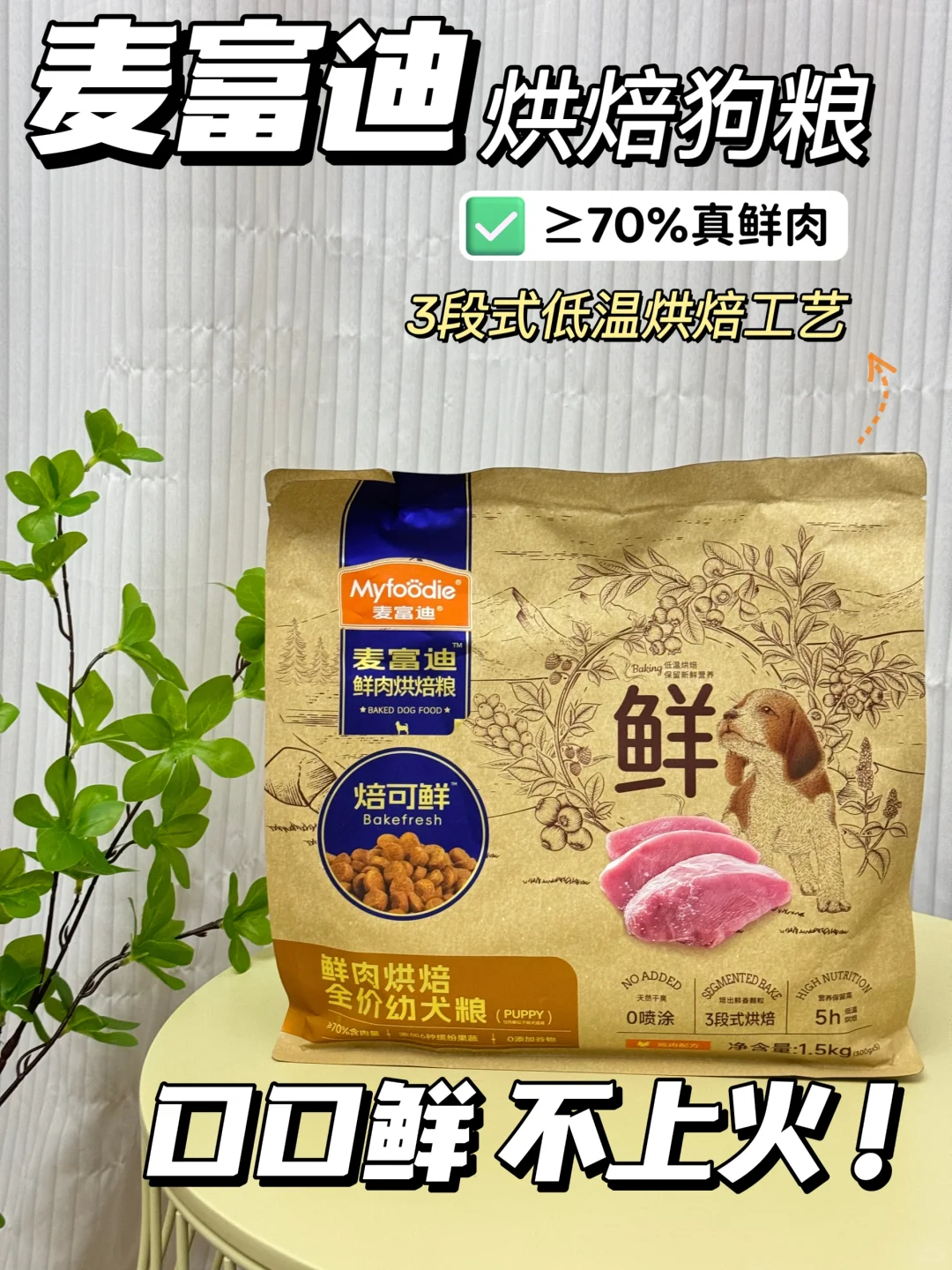 就是这个麦富迪烘焙狗粮~真的太太太优秀啦~真的很推荐尝试一下哦。这么鲜的狗粮可真的不多见!