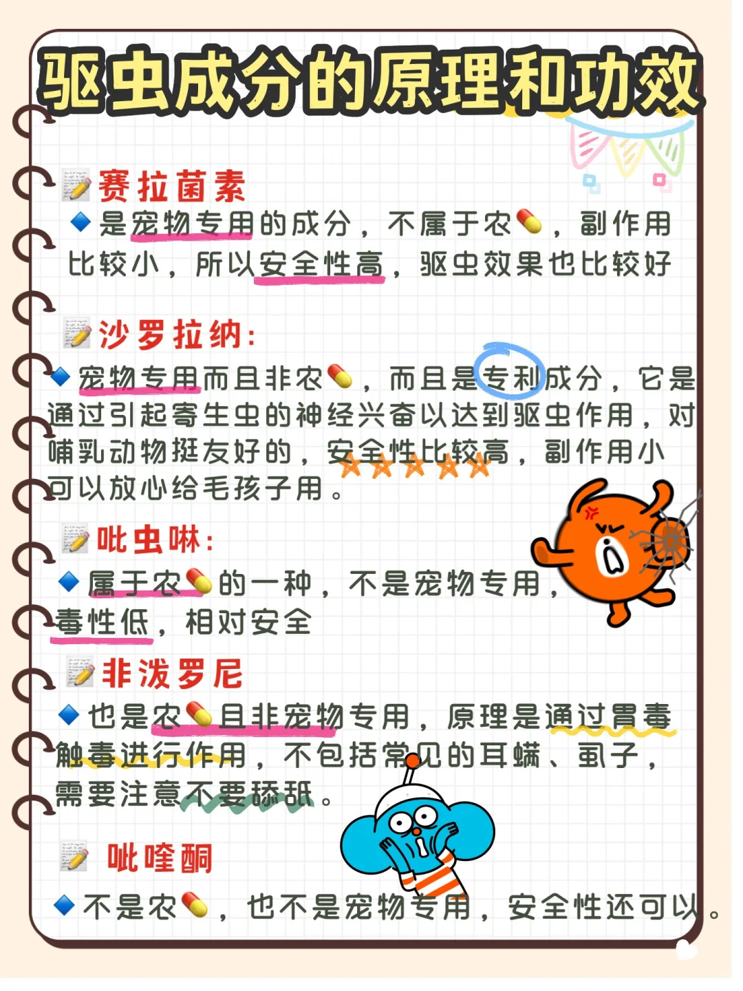 今天整理了常见的驱虫成分及其驱虫💊,分不清的铲屎官可以抄作业🙋~