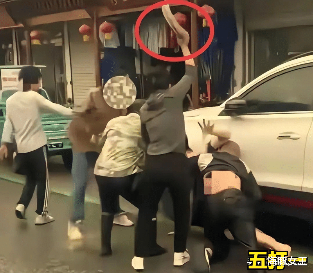 毕竟人多势众,很快蔡某就被地头蛇按压在地上,鞋子也被打飞,场面失去控制。