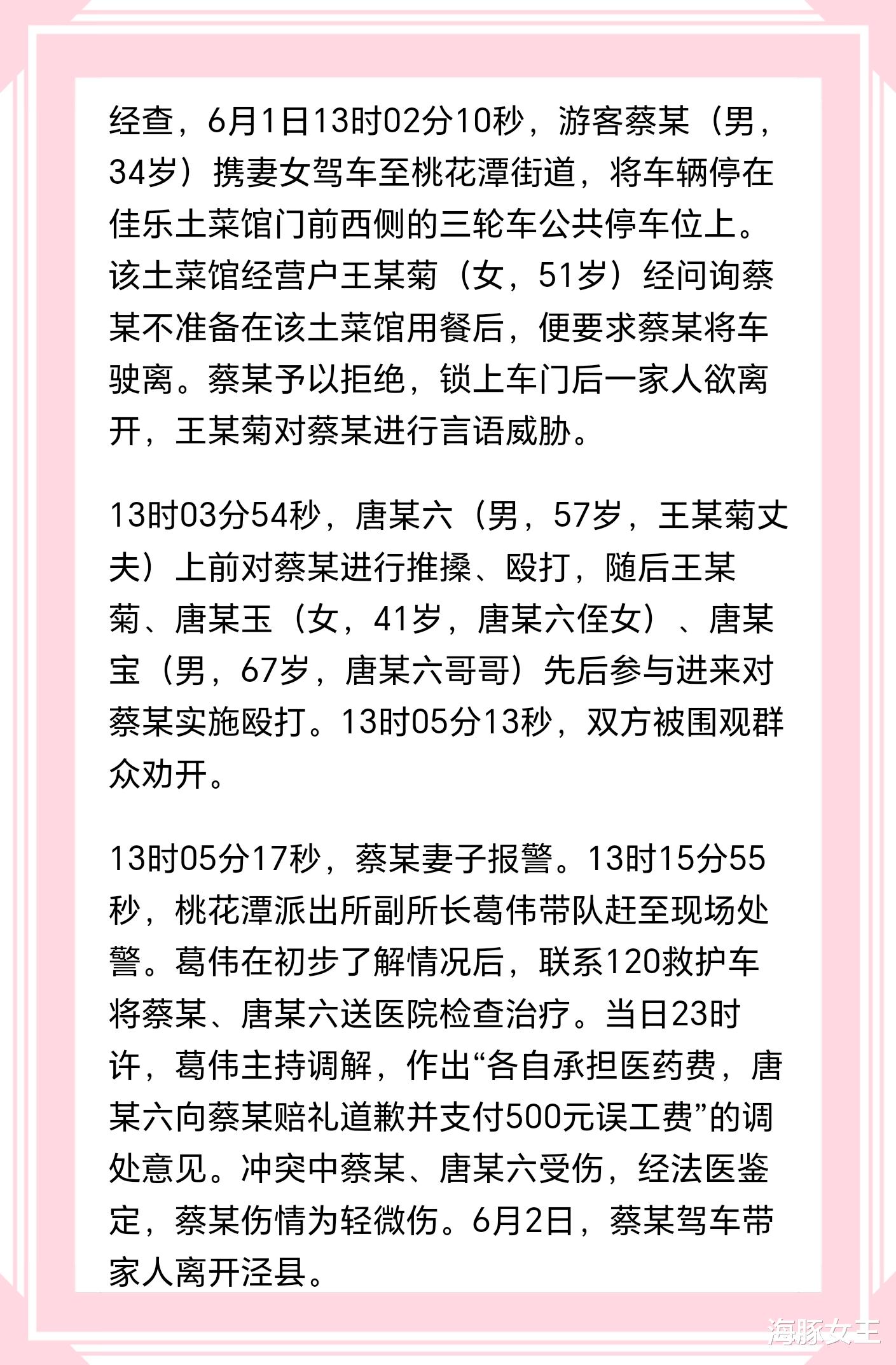 根据知情人爆料,当时蔡某也不是把车停在佳乐土菜馆门前,而是停在了敏敏烧烤门口的停车位,人家烧烤店也没有说啥。
