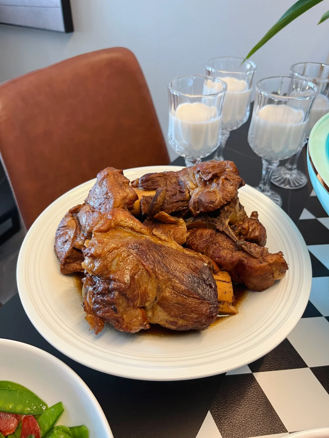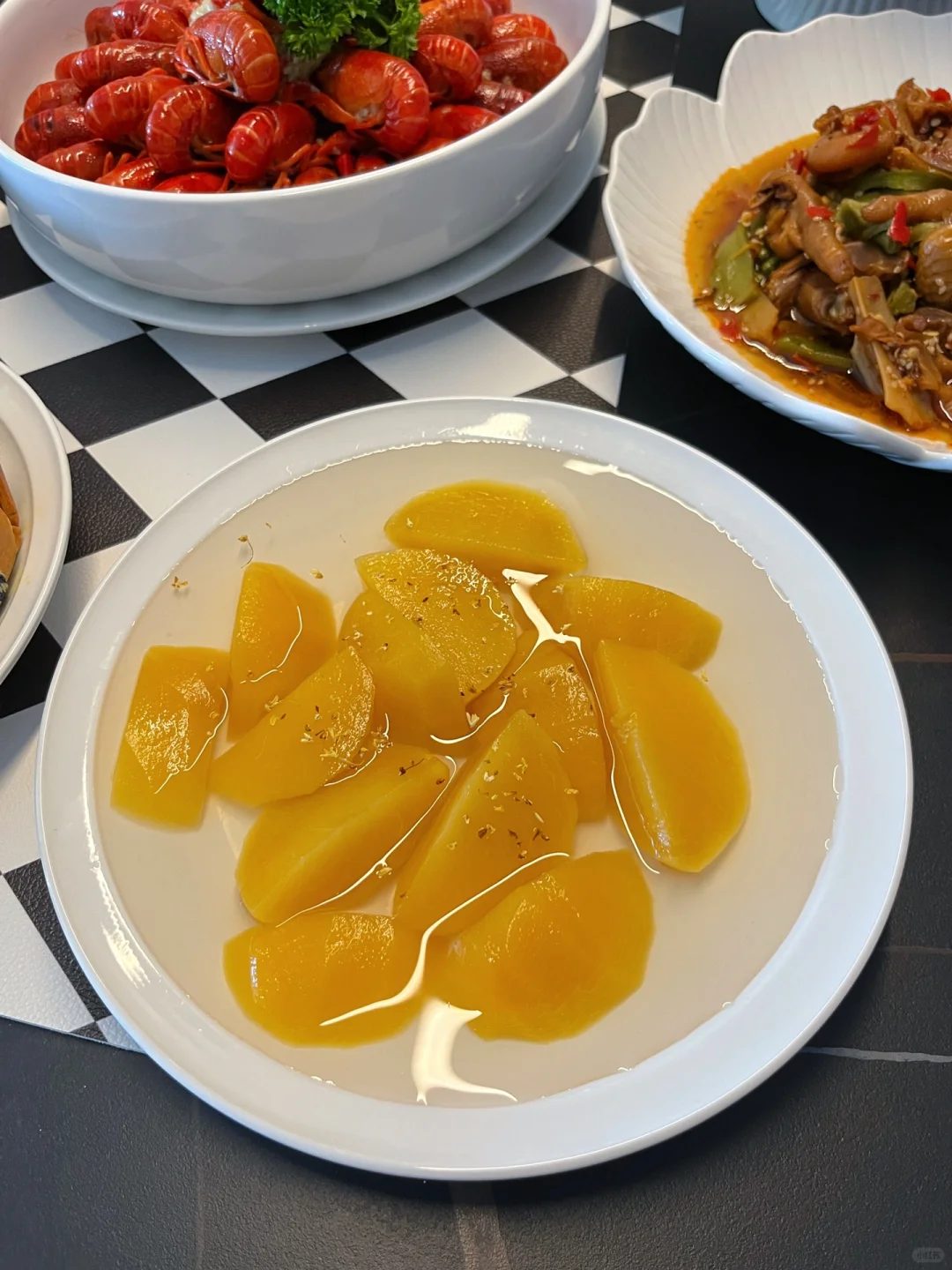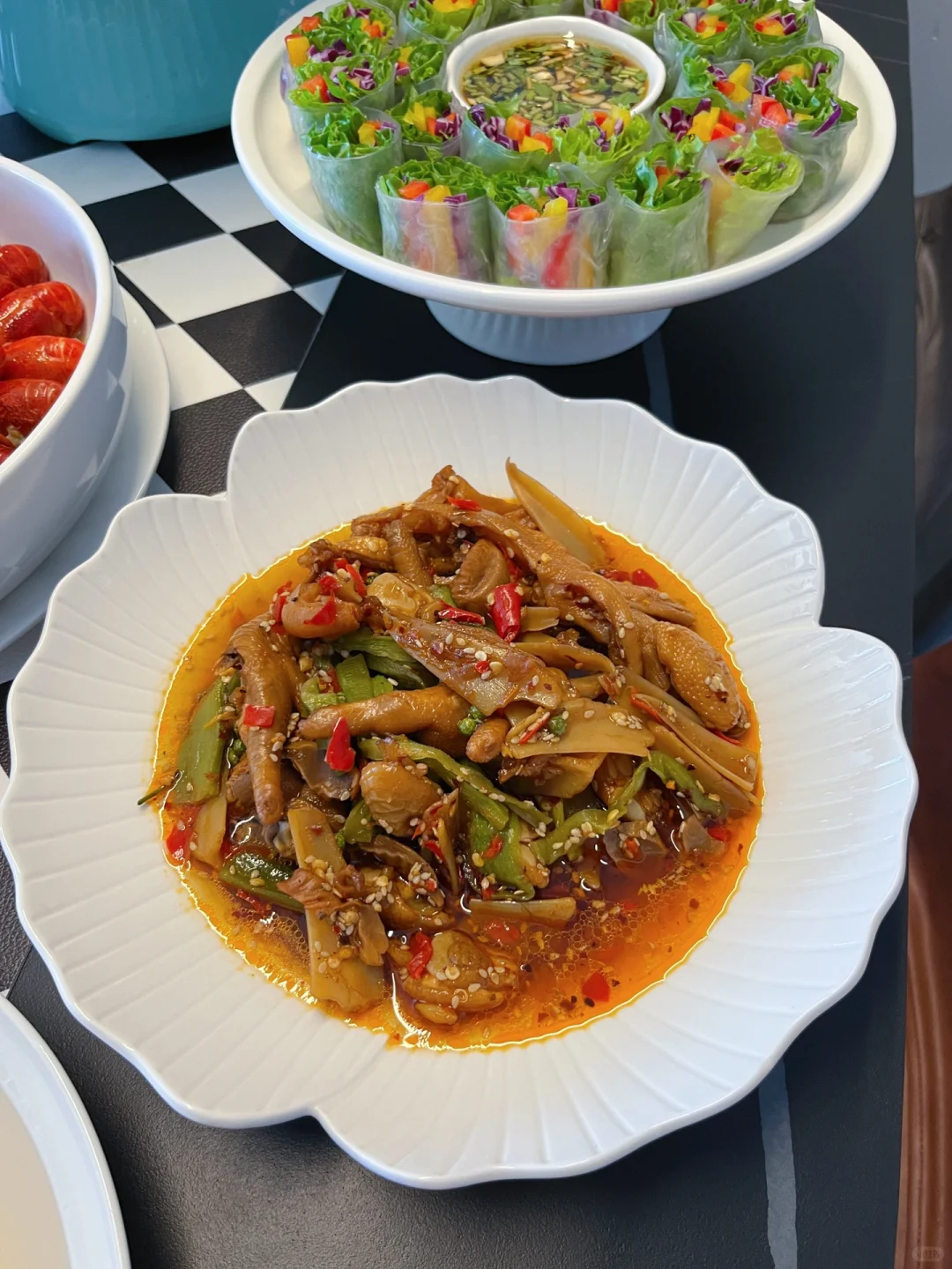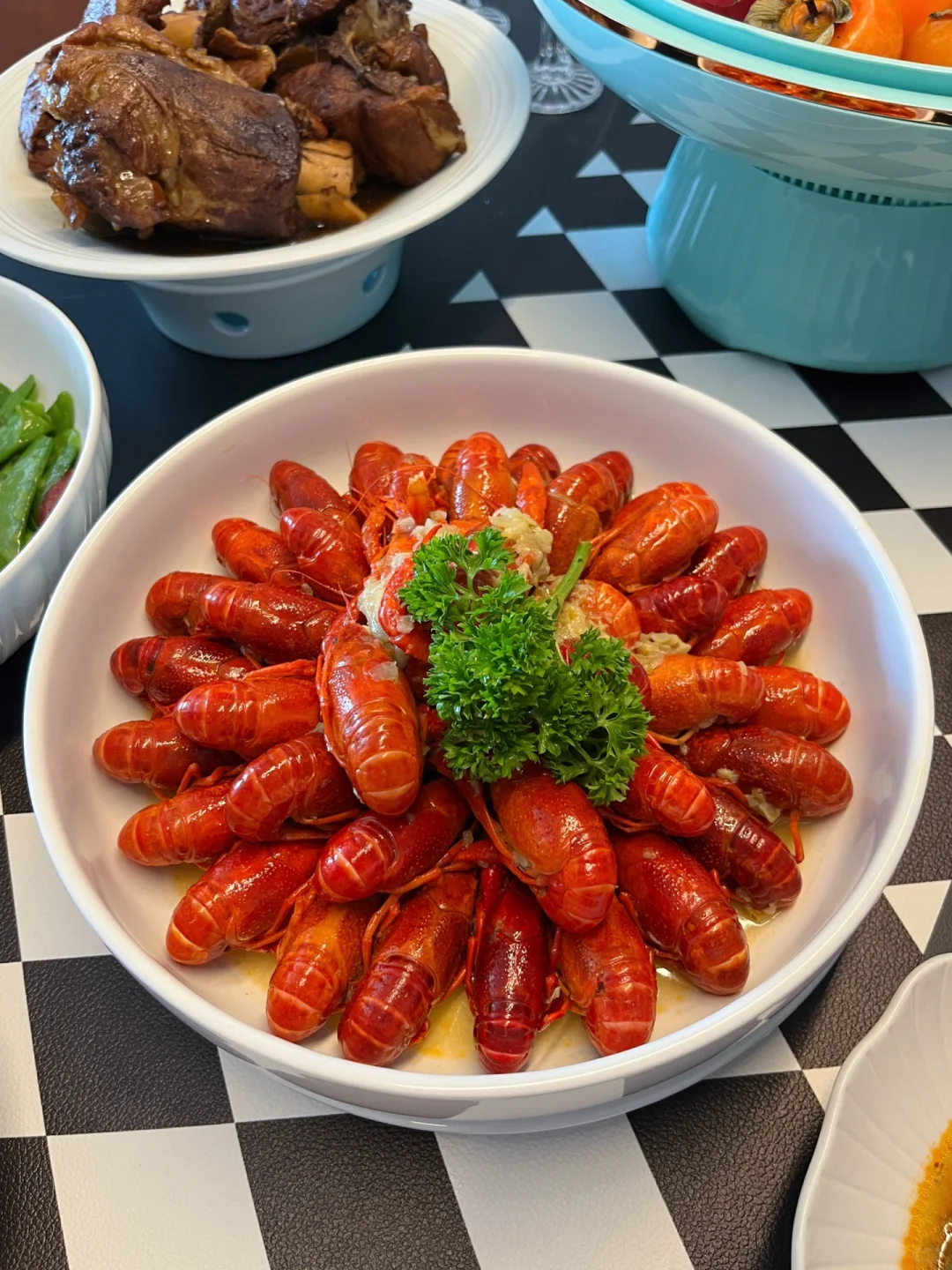 朋友这次来玩有两个愿望,一是带孩子去海边,二是吃我做的饭,哈哈哈哈~安排 【今日菜单:】 酱棒骨 蒜香小龙虾 大闸蟹 椒麻大杂烩 越南蔬菜春卷 腊肠炒荷兰豆 自制黄桃罐头 水果拼盘