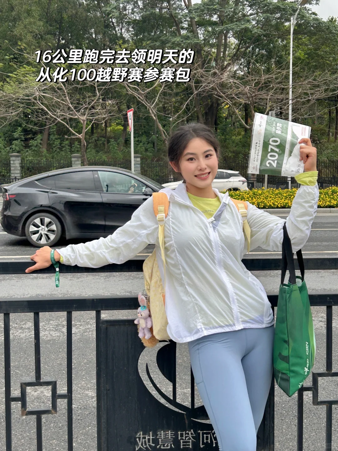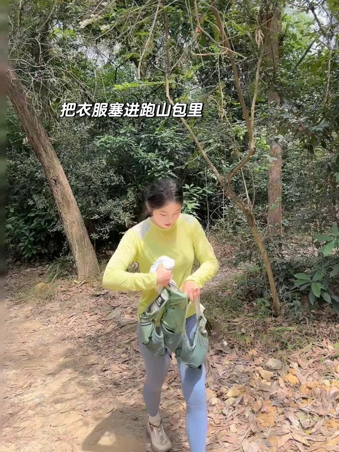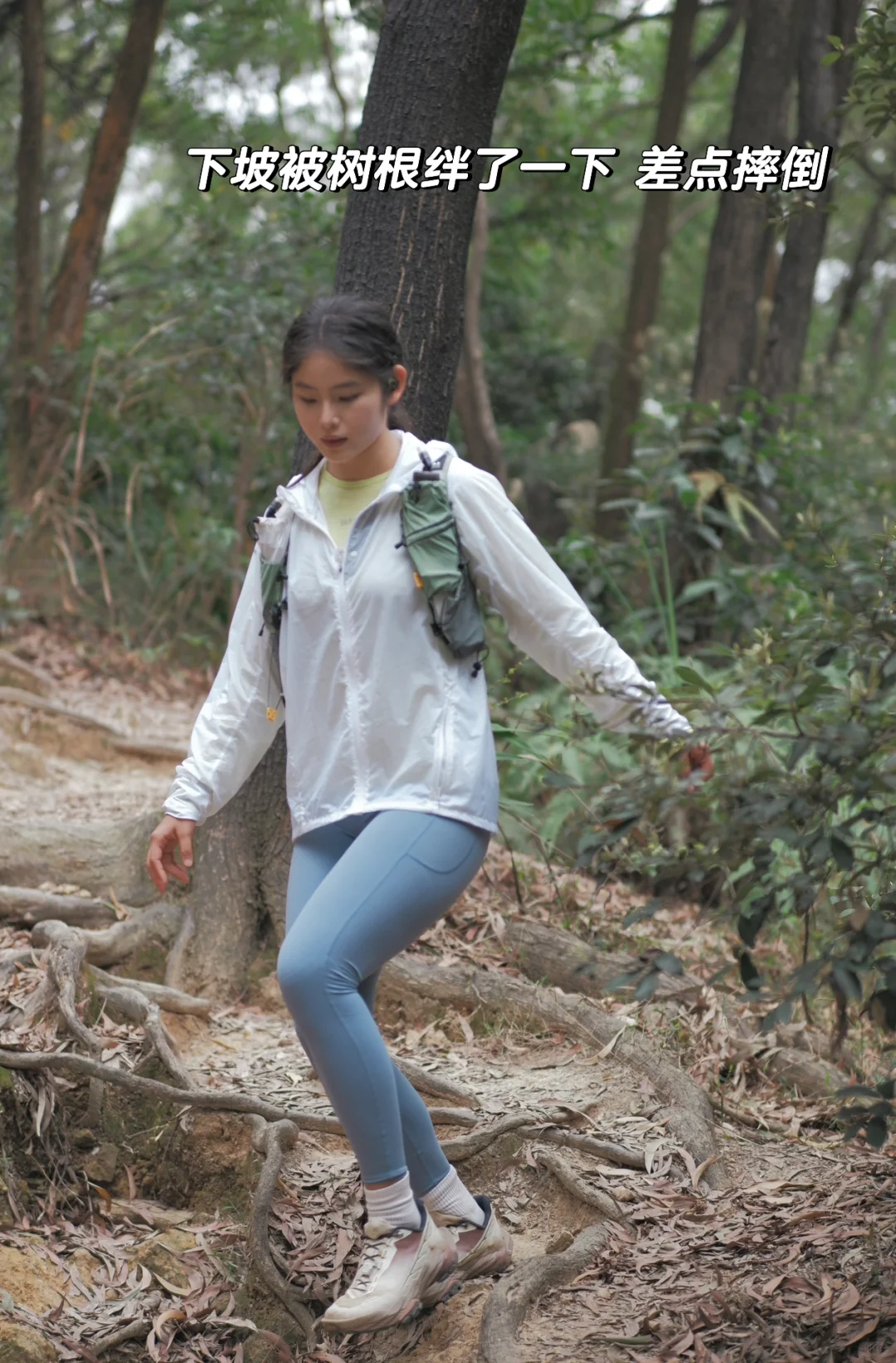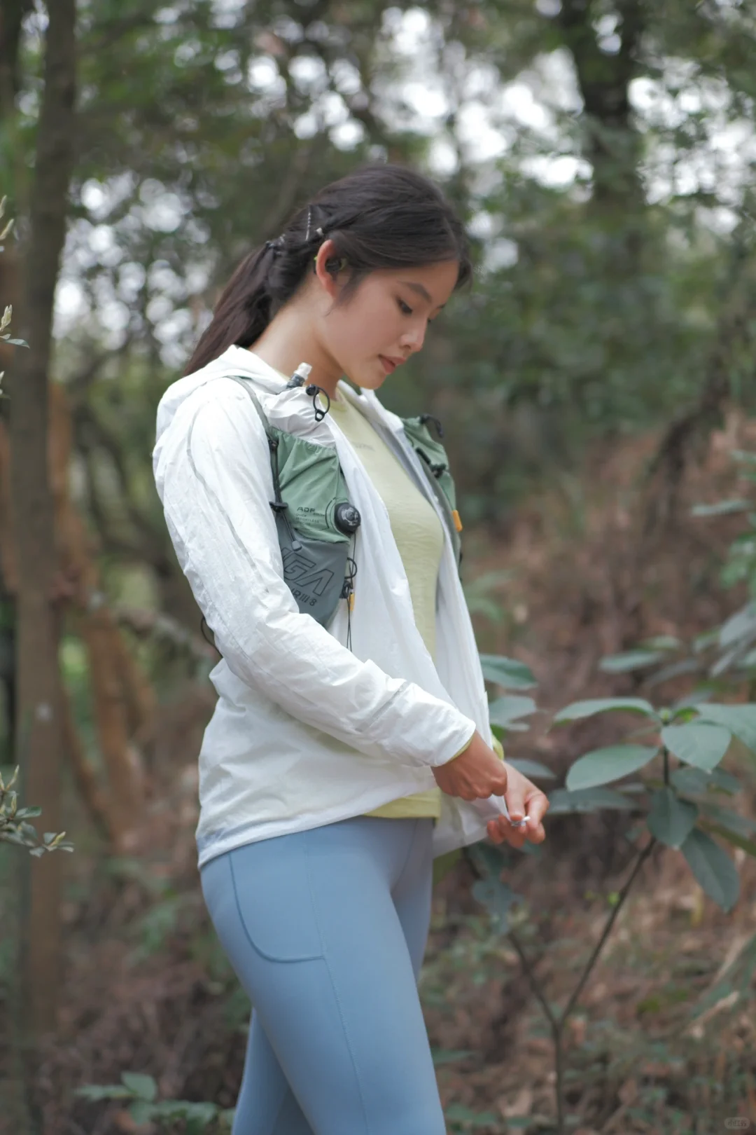 广州最近经常有小雨,为了防雨防风,穿了越野跑风壳,跑了没多久就开始出汗了,把外套脱下来折成一个手掌的大小,塞进跑山包里,非常方便
