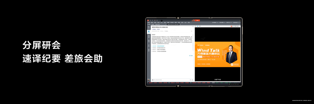 此外,鸿蒙版Wind金融终端还针对金融场景的多任务需求做了大量专项优化,比如用户参加投资会议或观看路演直播时,可以同时开启实时翻译与会议记录功能,会后能快速输出结构化纪要,相当于是给用户配备了一个随身的“金融工作站”。